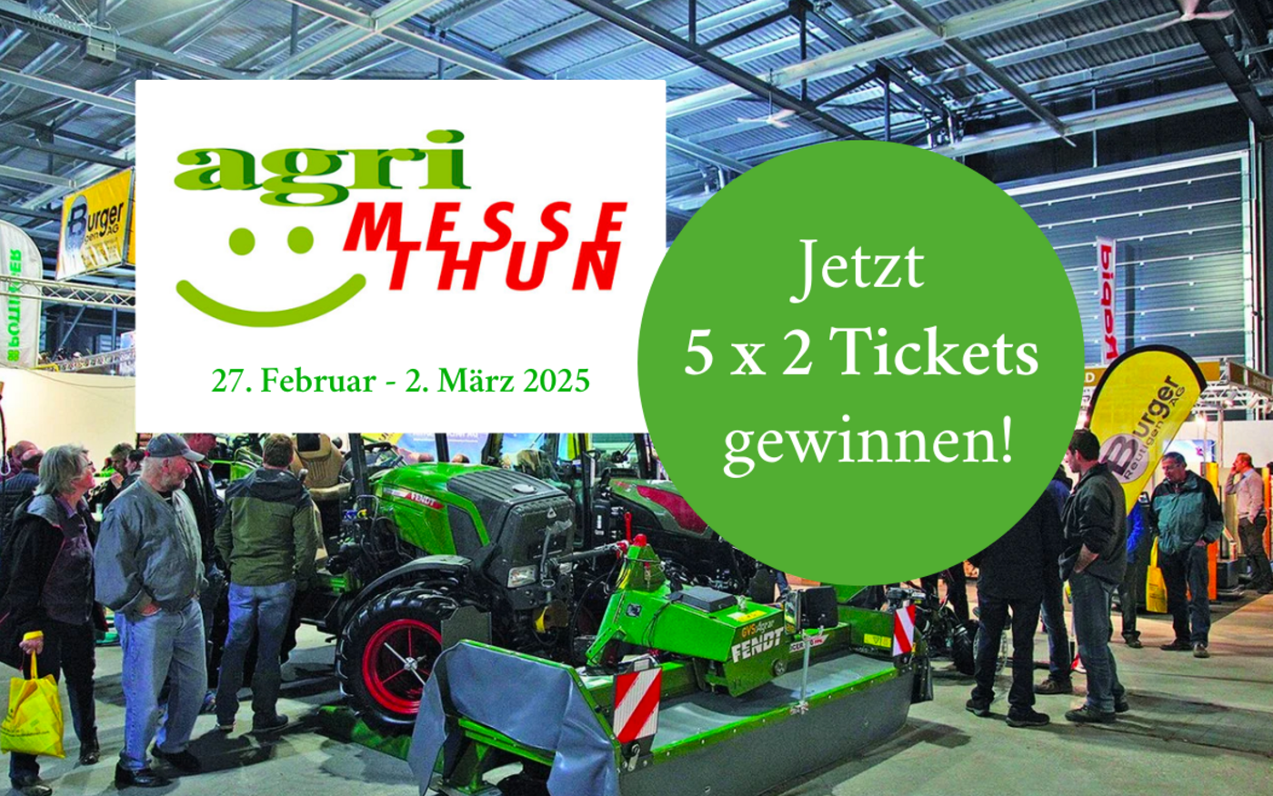 Möchten Sie die Agrimesse 2025 besuchen? Dann machen Sie mit bei unserem Wettbewerb und gewinnen Sie mit etwas Glück zwei Eintritte an die Messe. Wir verlosen 5x je zwei Tickets. Die Tickets für diesen Wettbewerb werden uns vom Veranstalter zur Verfügung gestellt. Mitmachen können Sie ganz einfach mit dem untenstehenden Formular.