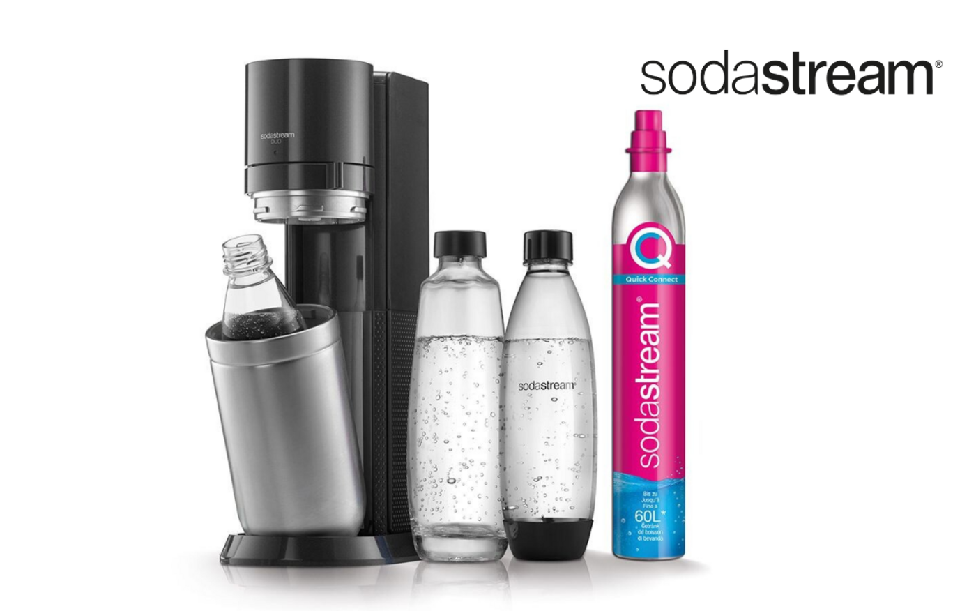 [IMG 4] Sprudelwasser leicht gemacht: SodaStream Duo überzeugt mit seinen 1L spülmaschinenfesten Flaschen, in Glas und wiederverwendbaren Kunststoff. Der CO2-Zylinder wird beim Soda Stream Duo neu ganz einfach in die Maschine eingeschoben. So bequem wie mit dem SodaStream Duo war Sprudeln noch nie!