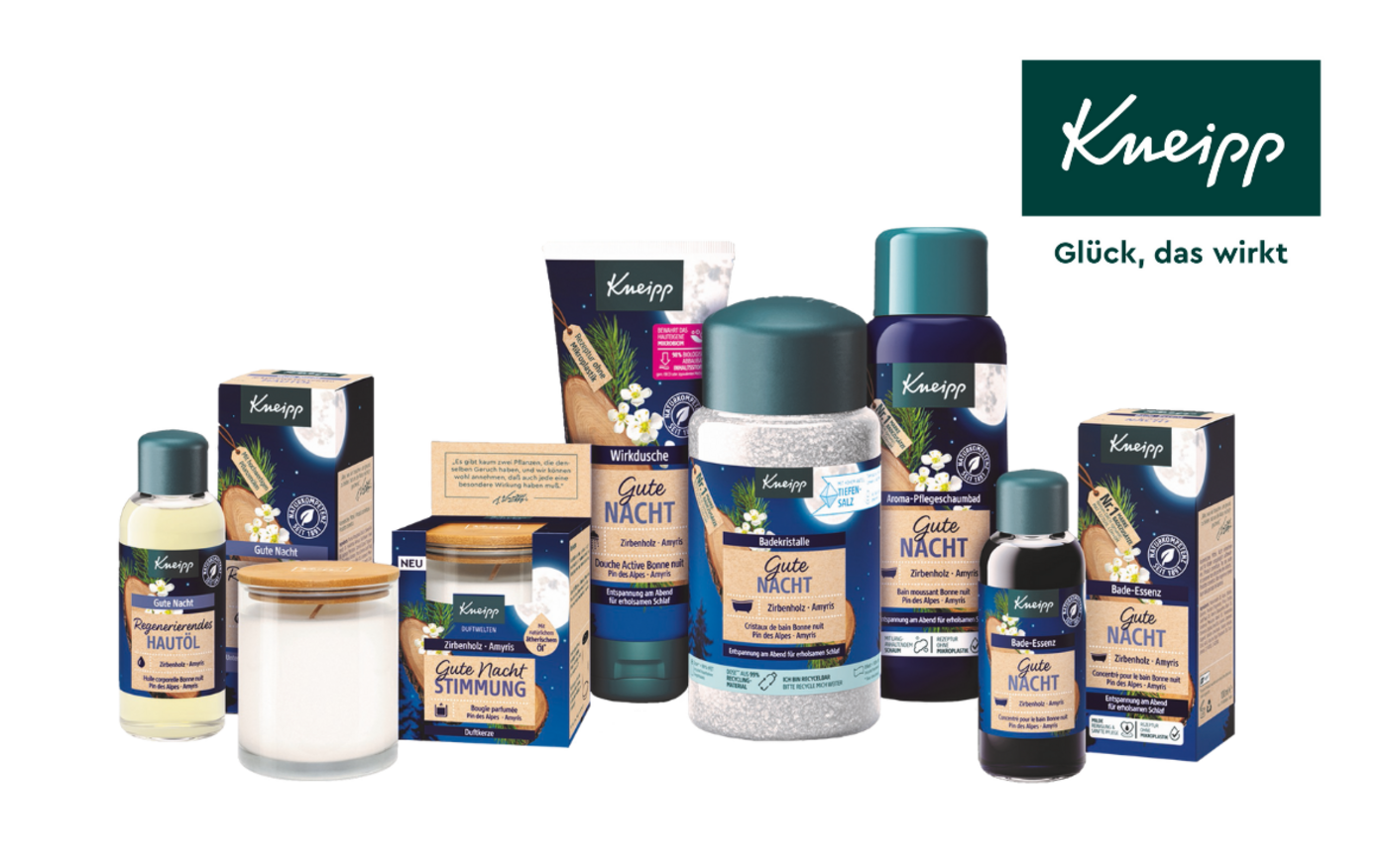 [IMG 5] Das Abendritual mit den Kneipp® Gute Nacht Produkten: Der beruhigende, warm-holzige Duft mit ätherischen Ölen aus Zirbenholz und Amyris schenken Entspannung für eine gemütliche Nacht. Das Paket enthält Bade-Essenz, eine Wirkdusche, Badekristalle, ein Aroma-Pflegeschaumbad, regenerierendes Hautöl und eine Duftkerze.