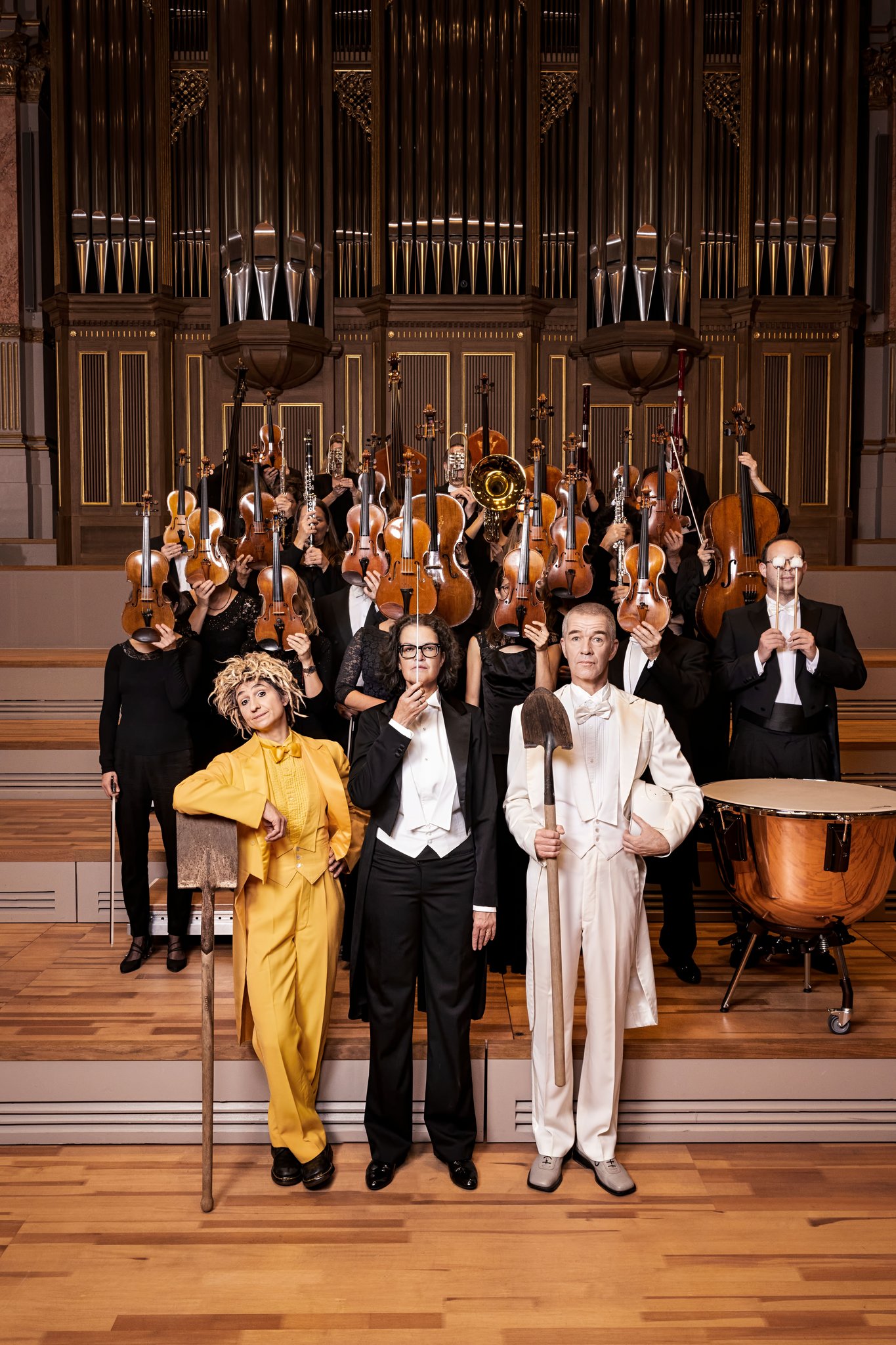Mit ihren Fragen verwandeln sie die Konzertbühne in ein Tummelfeld der wahnwitzigsten Experimente: Was fehlt, wenn die Dirigentin fehlt? Kann ein Orchester improvisieren? Gibt es Komik ab Blatt?