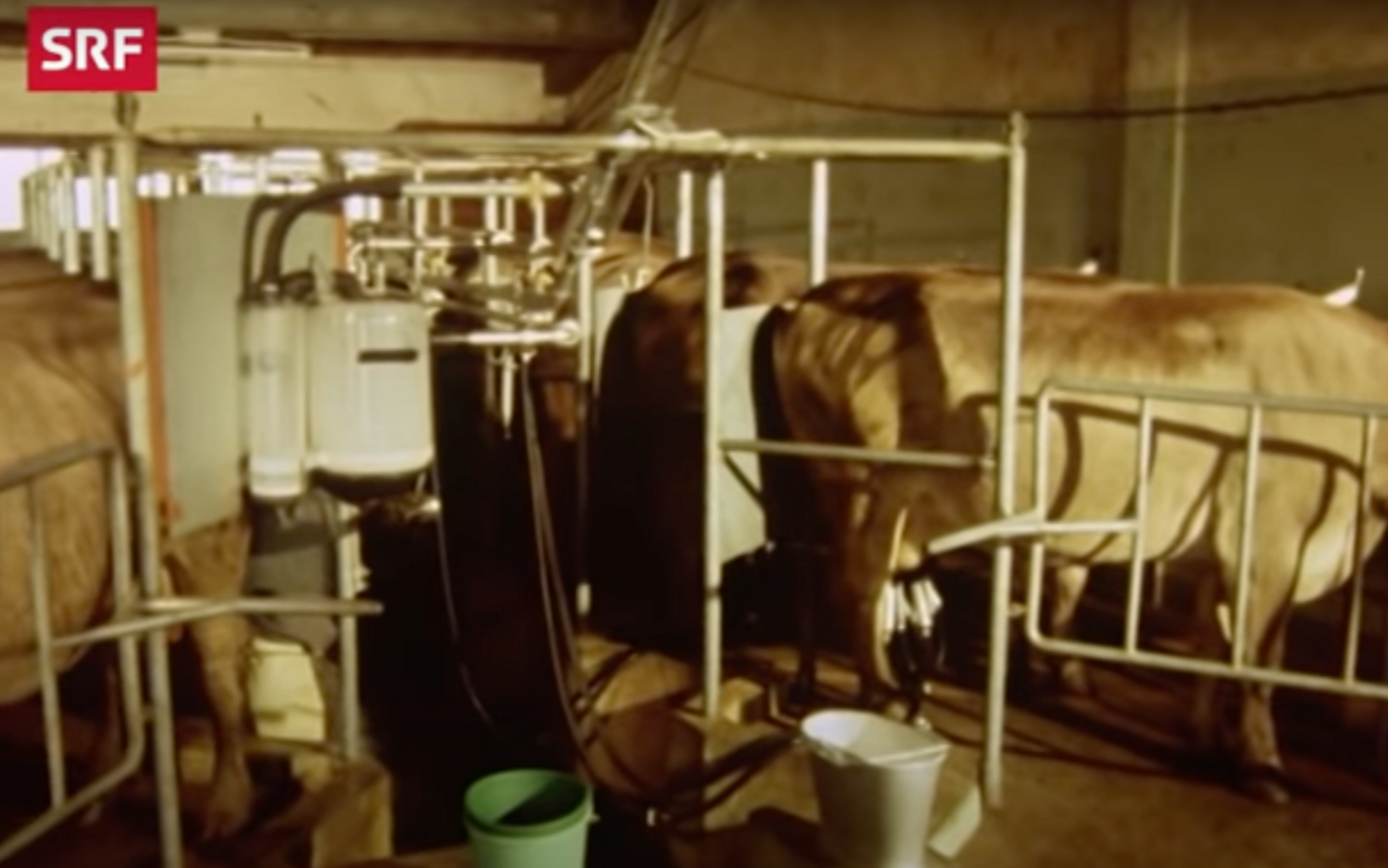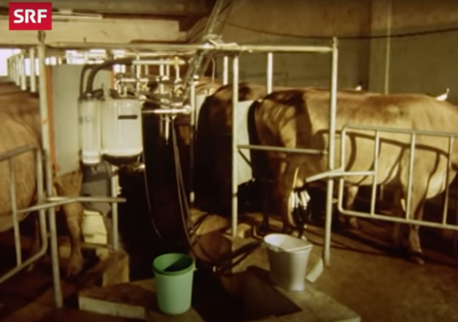 «Liegt die Zukunft in unseren Alpen etwa bei solchen Musterbetrieben?», fragt der Sprecher des Films, während ein für die 70er-Jahre hochmoderner Alpbetrieb gezeigt wird. Auf der Alp Frid, die zum Gommer Dorf Ernen gehört, wird seit den 60er-Jahren mit einer Anlage gemolken, die Milch «schiesst vom Kuheuter auf der Alp durch eine Pipeline direkt ins Tal».