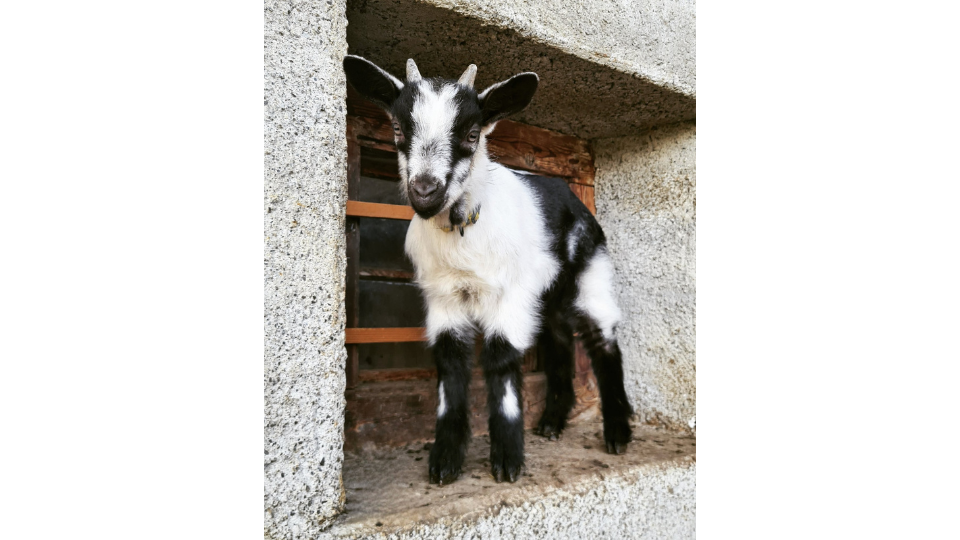 Auf seinem Fensterplatz hat dieses Zicklein alles im Blick. (Bild: Andrea Zurbrügg, Reichenbach BE)
