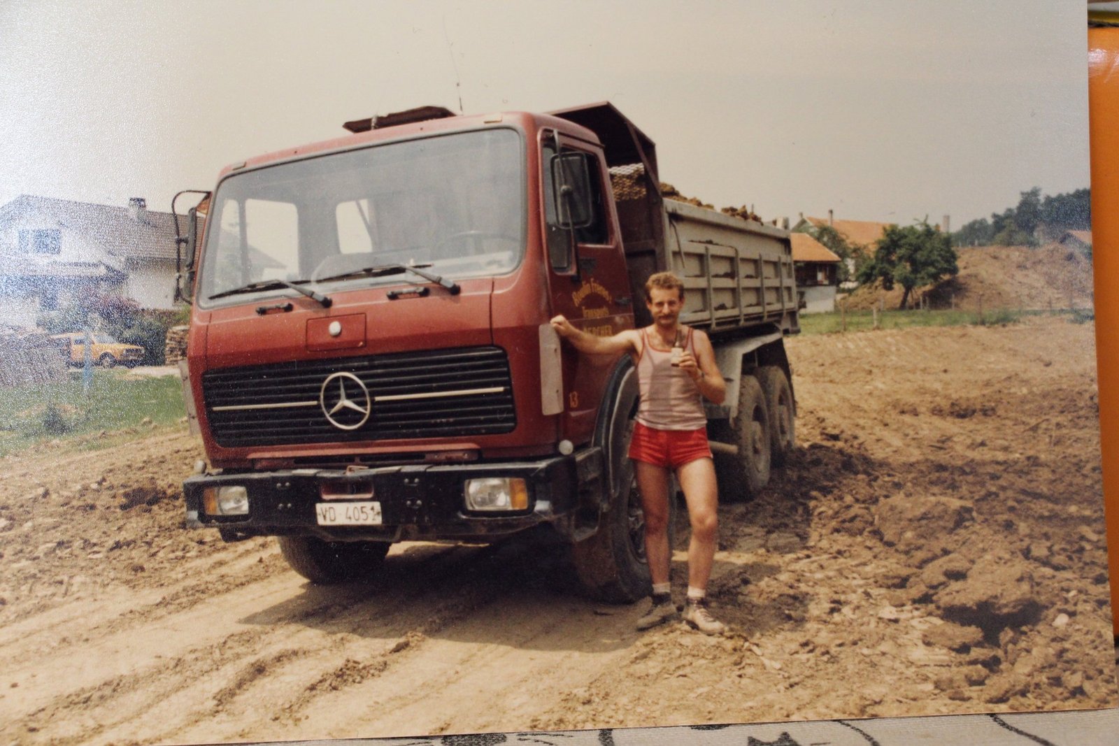 Am ersten Arbeitstag durfte ich in einem Mercedes-Dreiachs-Kipper auf dem Beifahrersitz Platz nehmen. Ein Chauffeur erklärte mir während der Fahrt zum nahen betriebseigenen Betonwerk in Bioley-Magnoux die wichtigsten Funktionen des Gefährts. Im Kieswerk angekommen, wurde der Kipper bis oben hinaus mit Sand beladen. «On échange gravière avec La Poissine à Grandson», erklärte er mir. Dort kippte er den Sand im Kieswerk und als Gegenleistung füllte ein Baggerfahrer den Kipper mit «huit quinze»-Kies, bis es obenaus über die Kipperwände auf den Platz rieselte, denn Kies fliesst wie Wasser. «Il faut toujours bien chargé», erklärte der Kollege. Also immer gut füllen, merkte ich mir. Ich steuerte den beladenen Kipper zurück ins Betonwerk, denn dort gab es zwar eine Sandgrube, dafür keinen Kies. Den holte man in Grandson, wo ein Schwimmbagger Kies, tief aus dem See holte.