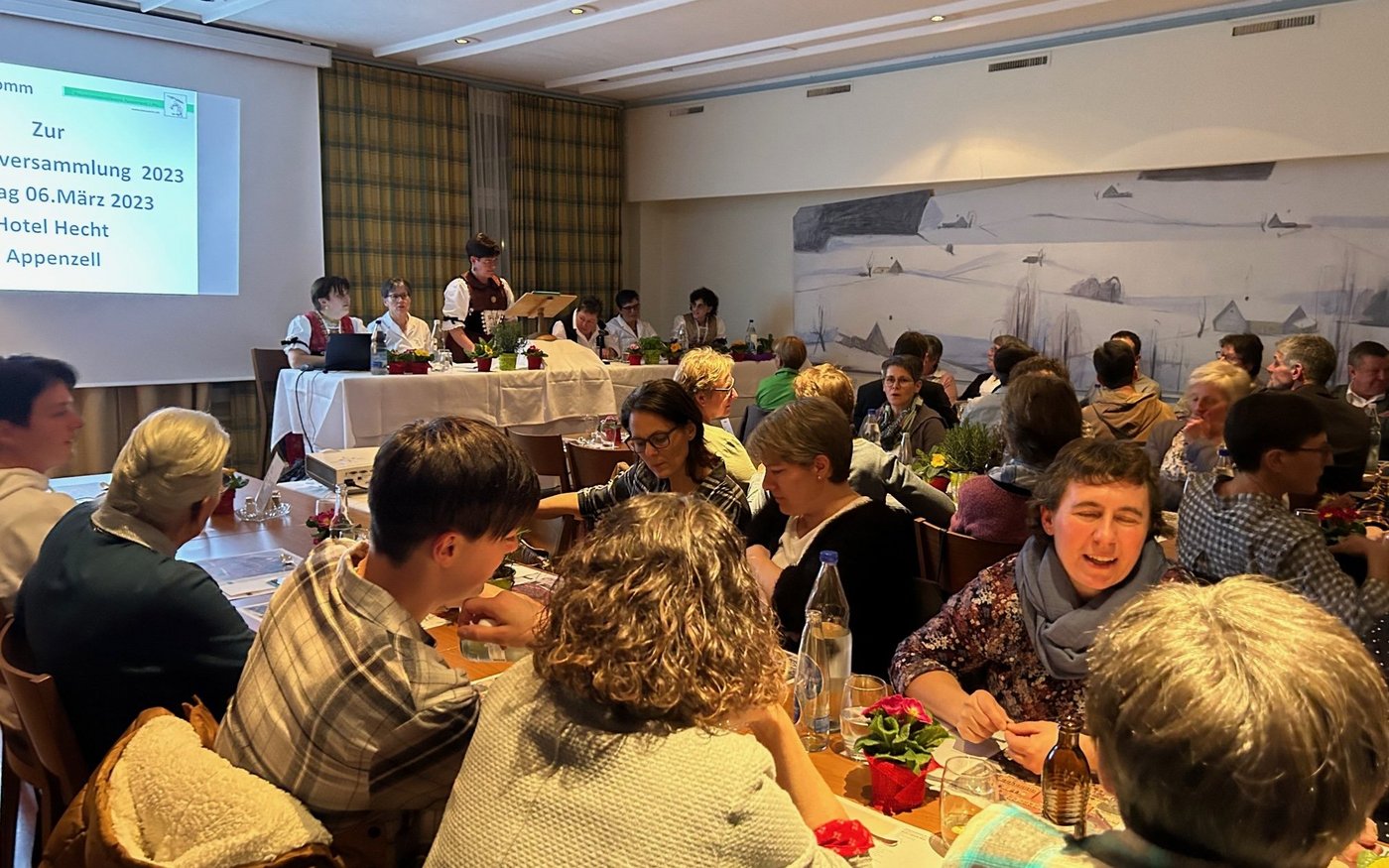 Gerne in Tracht, stand auf der Einladung der Hauptversammlung des Bäuerinnenverbands Appenzell Innerrhoden. Präsidentin Mechtild Grubenmann erschien denn auch in Tracht. Erst vor einem Jahr hatte sie die Gelegenheit, eine Tracht zu erwerben. Nun trägt sie diese mit Stolz – nicht nur an innerrhödler, sondern auch an ausserkantonalen Anlässen. Für sie ist die Tracht ein Symbol für Heimat, Brauchtum und Landwirtschaft.…