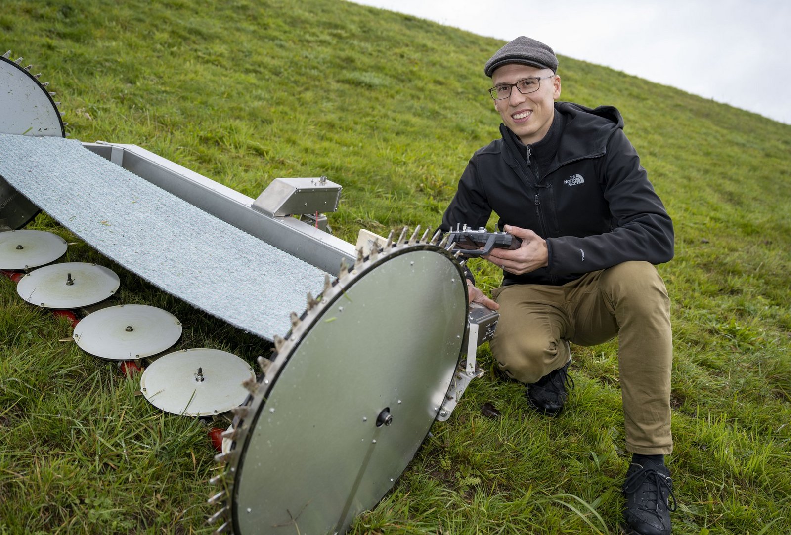 Mit seinem Projekt hat Amadeo Knüsel den «Zinno-Ideenscheck für Berggebiete» gewonnen. Die 15'000 Franken Preisgeld wolle er vollständig in die Weiterentwicklung seines Mähers stecken, schreibt die Schweizer Berghilfe. So soll das Gerät z. B. künftig ohne Fernbedienung autonom am Hang arbeiten können. Dank seinem geringen Gewicht werde es den Boden nicht verdichten und auch – bis auf die gemähte Wiese – keine Spuren hinterlassen. Betrieben wird der Roboter elektrisch.