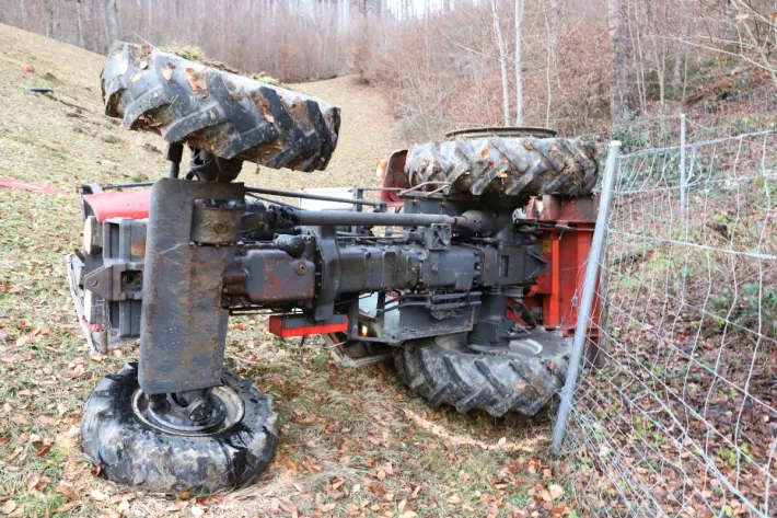 Der Traktor rutschte ab, überschlug sich mehrfach und begrub schliesslich den 72-Jährigen unter sich, der in der Folge noch vor Eintreffen der Rettungskräfte am Unfallort verstarb. Am Traktor entstand Totalschaden.