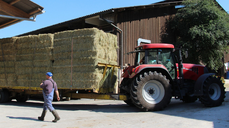 - Auf hohen Ladungen wie beispielsweise Strohfudern darf niemand mitfahren. Mitfahren auf Anhängern ist generell nur auf eingerichteten Sitz- oder Stehplätzen, auf der Ladebrücke oder auf der Ladung erlaubt, wenn die bewilligten Plätze nicht ausreichen.