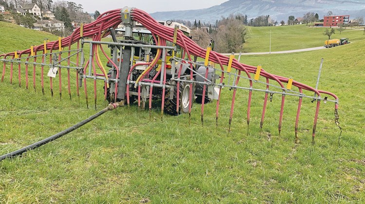 Vom Obligatorium wären wir nicht direkt betroffen. Unser Betrieb liegt zwar auf 1300 m ü. M. aber umfasst viel flaches Land. Bis im Sommer güllen wir diese Flächen mit dem Schleppschlauch, im Herbst gefriert es die Schläuche, dann müssen wir herkömmlich güllen. Grundsätzlich finde ich diese Art der Gülleausbringung praktisch. In der Region windet es oft, da eignet sich dieses System gut. Auch, weil das Wallis touristisch geprägt ist, ist es bezüglich Geruchsemmissionen vorteilhaft.
