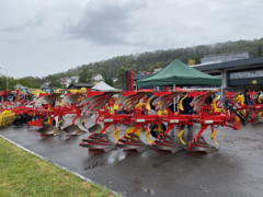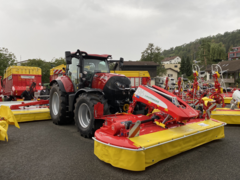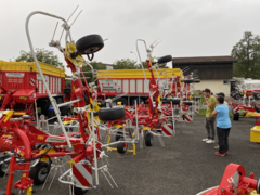 Auf dem Firmengelände gab es nämlich alles zu sehen, was das Pöttinger-Herz begehrt. Die verschiedenen Ladewagen, Band- und und Kreislerschwader, Mähwerke, Ballenpressen, Pflüge und Sämaschinen im Pöttinger-typischen Farbschema Rot-Weiss-Gelb gaben denn auch trotz leichtem Regen viel Stoff für regen Austausch und zum Fachsimpeln.