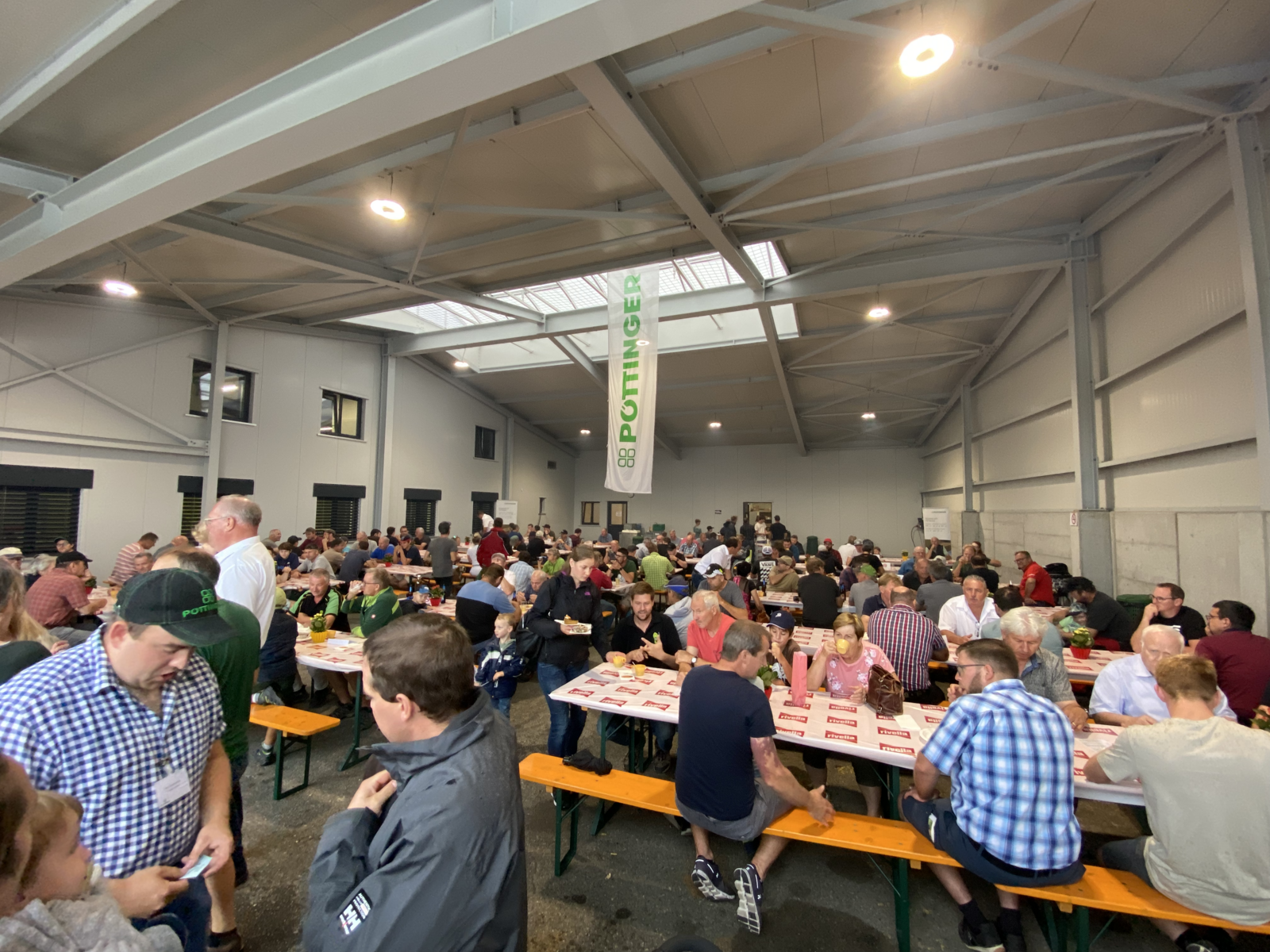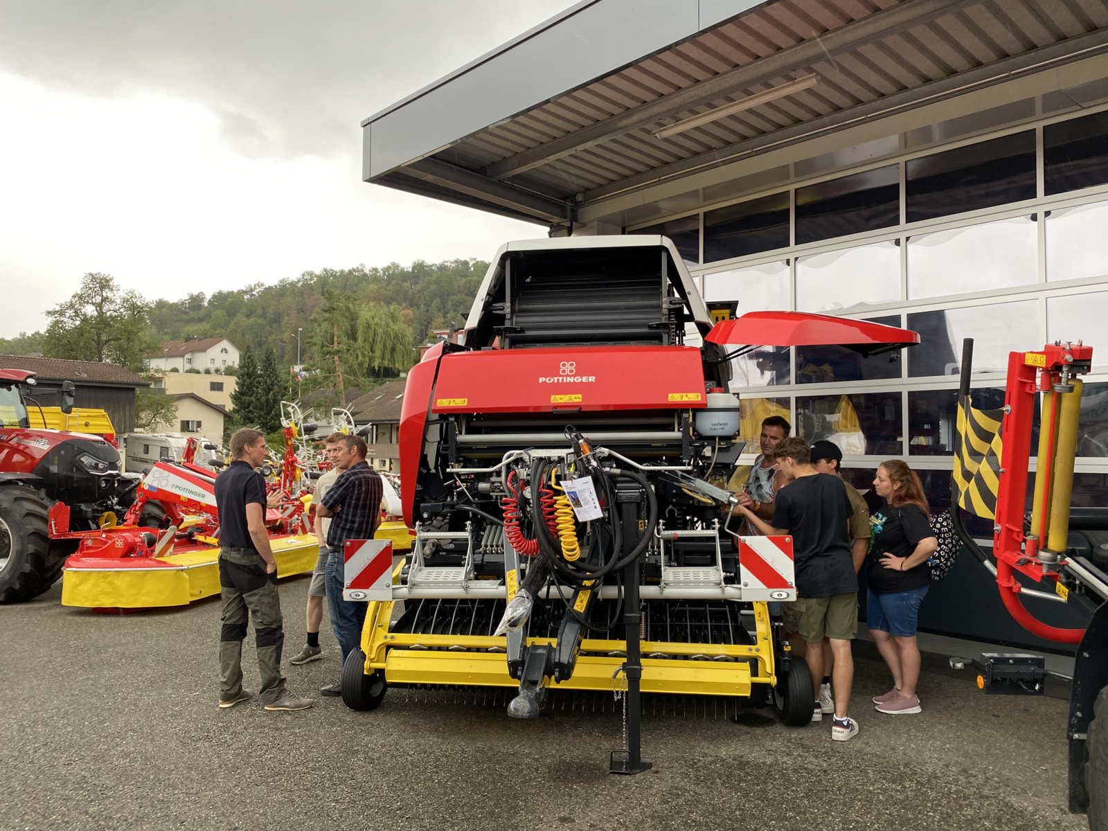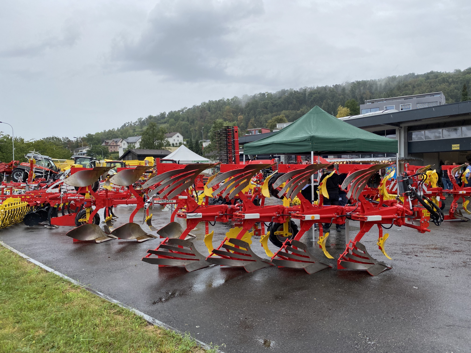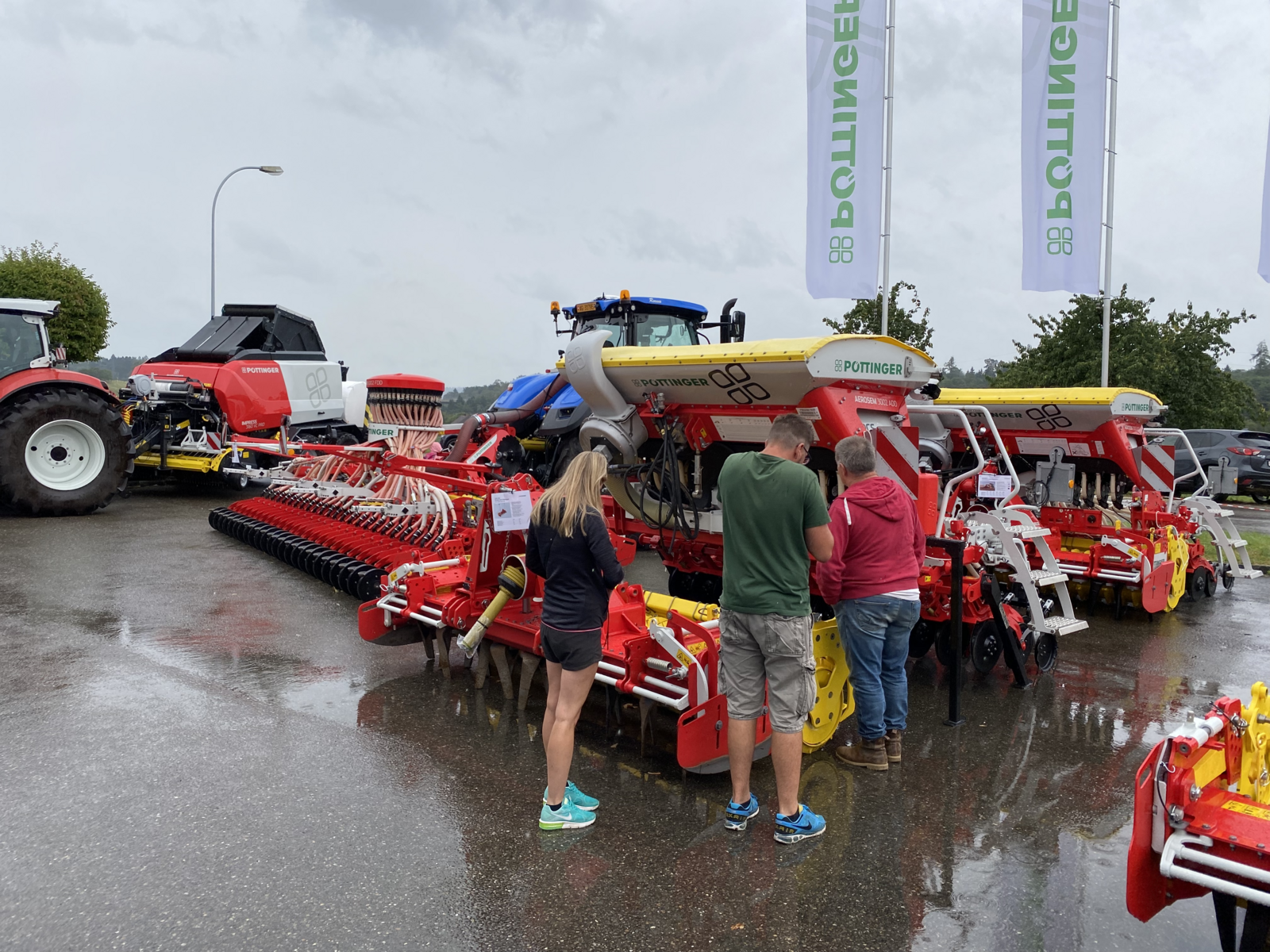Der guten Stimmung verpasste der Regenguss aber keinen Dämpfer, vielmehr bot sich so eine gute Gelegenheit, um beim Zmittag den persönlichen Austausch zu pflegen. Von ein paar Regentropfen lies sich auch das gut aufgestellte Pöttinger-Team nicht aus der Ruhe bringen. Geschäftsführer Hanspeter Hitz nahm die Sache gelassen: «Was man nicht ändern kann, darüber braucht man sich auch nicht aufzuregen. Wir freuen uns über die vielen Gäste und und über das Interesse an unseren Maschinen.»
