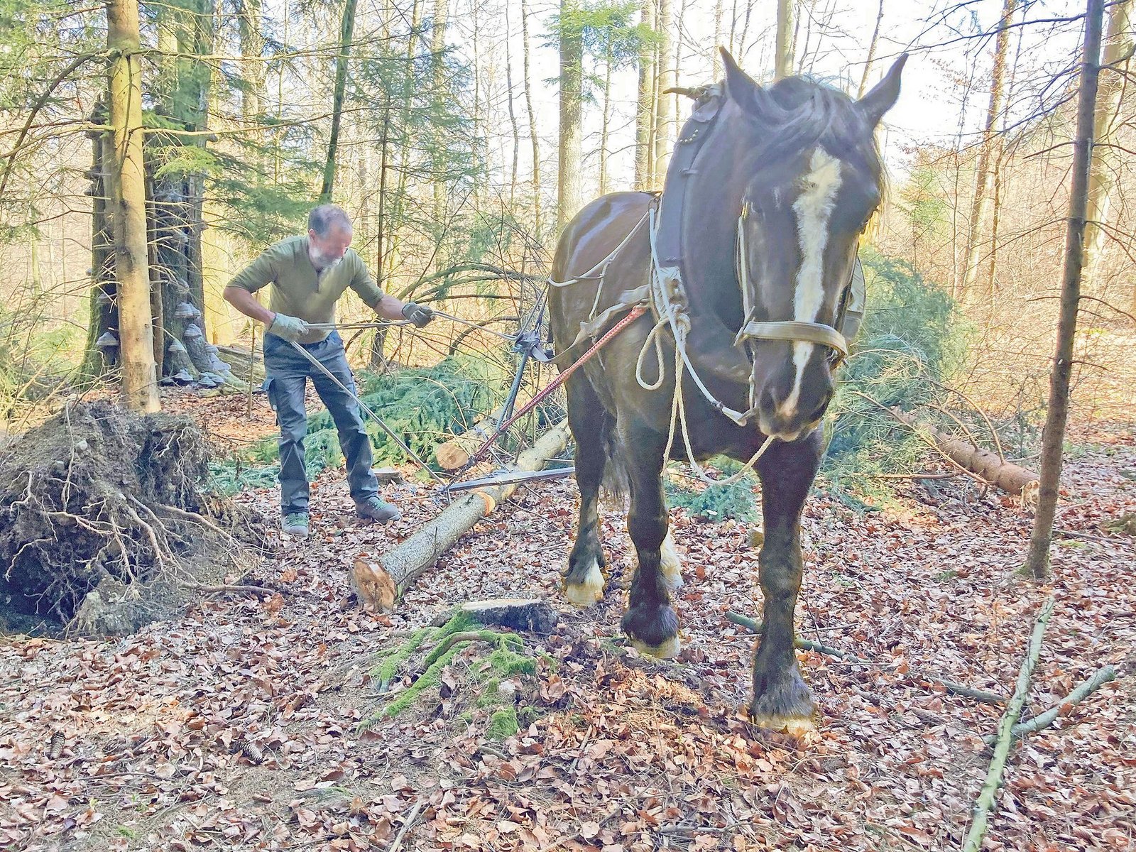 Man muss sie nicht lange im Wald suchen, ihre Glöckchen sind von weitem zu hören: Drei schwere Kaltblutpferde sind zurzeit auf dem Winterthurer Eschenberg im Einsatz. Sie schleppen Stämme und Äste von Nadelbäumen ab, die dem Nassschnee des vergangenen Winters oder den starken Stürmen vom letzten Jahr nicht standhalten konnten. Diese Arbeit muss nun dringend getan werden, um dem Borkenkäfer zuvorzukommen, der sich auf…