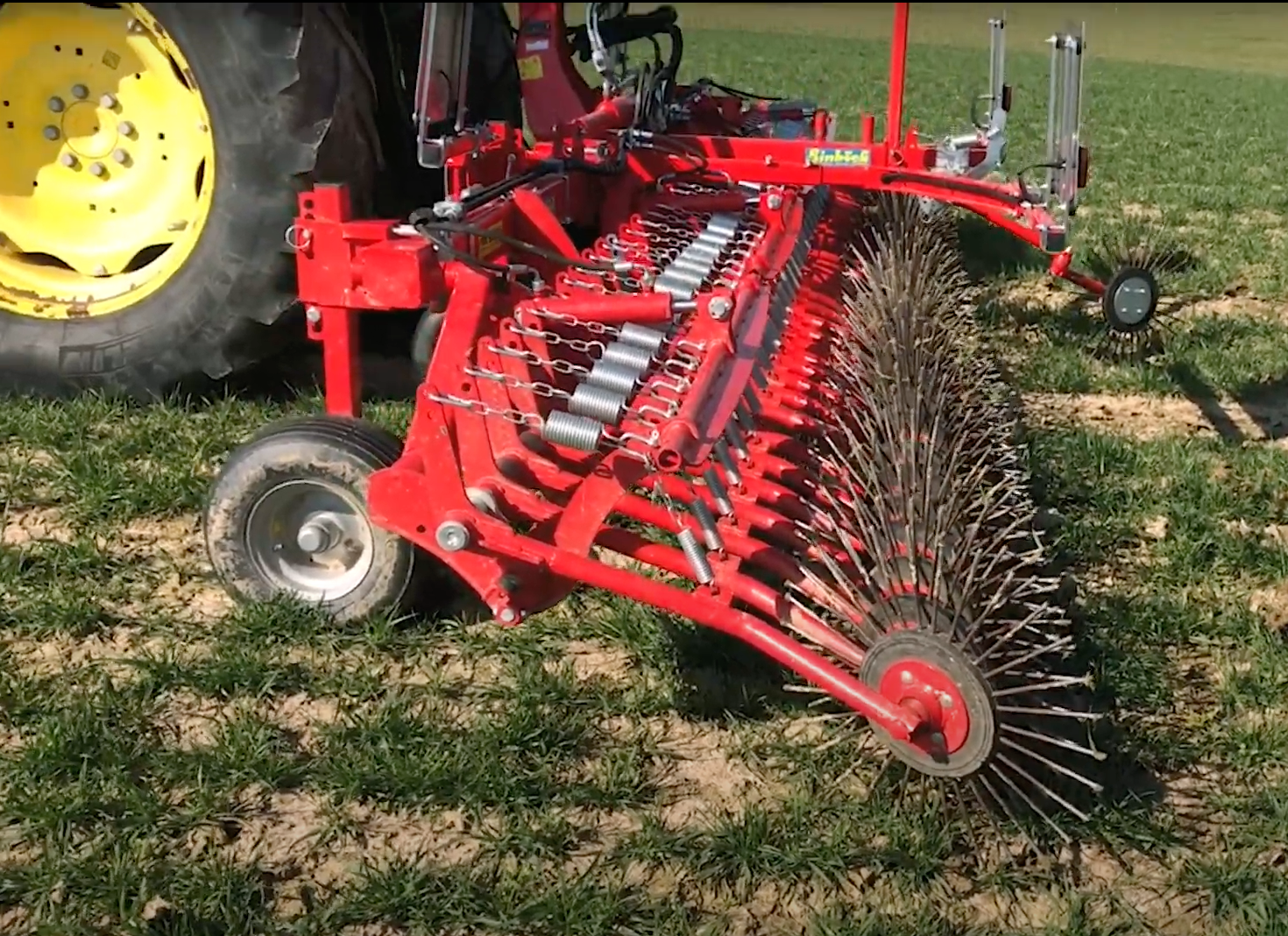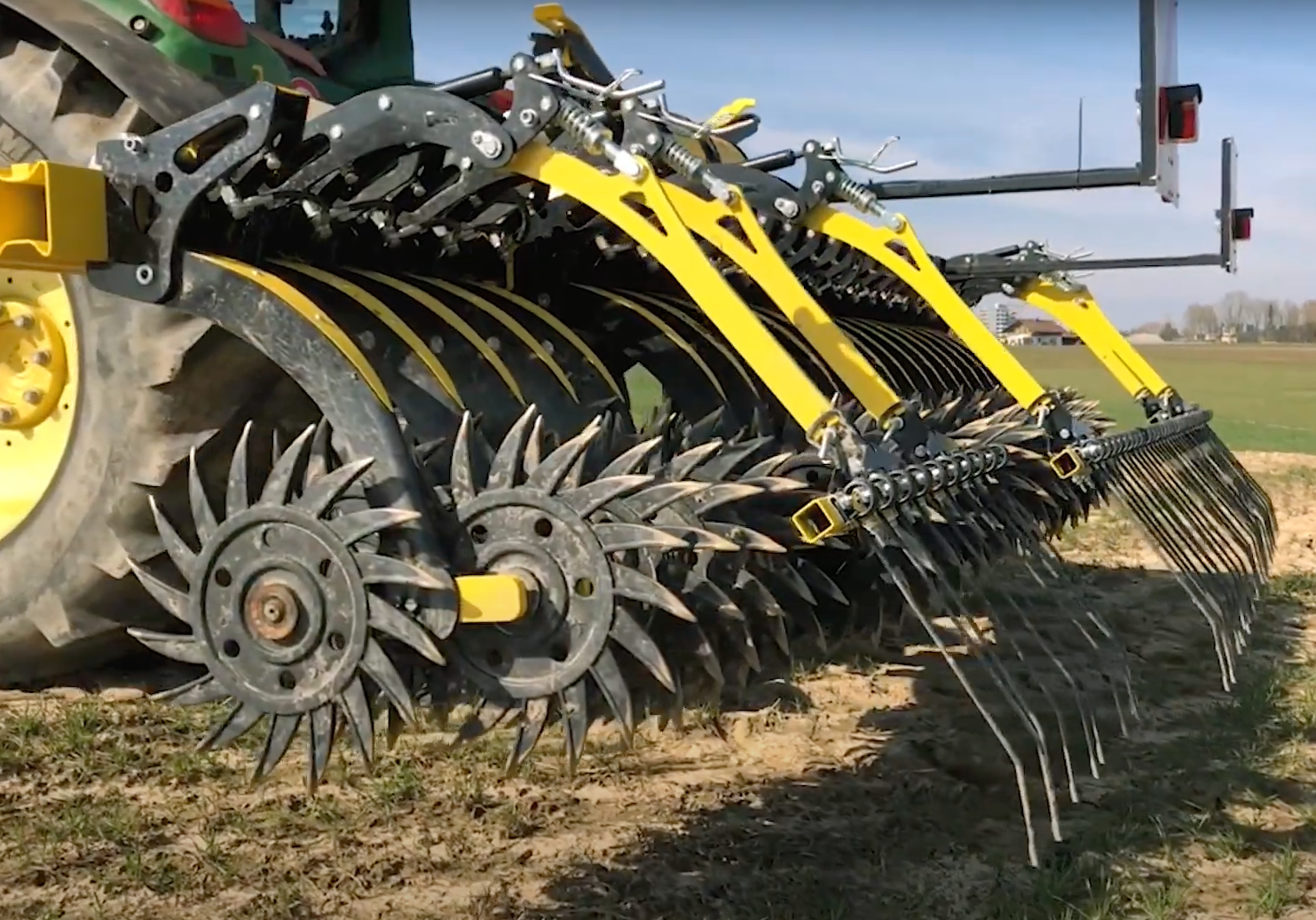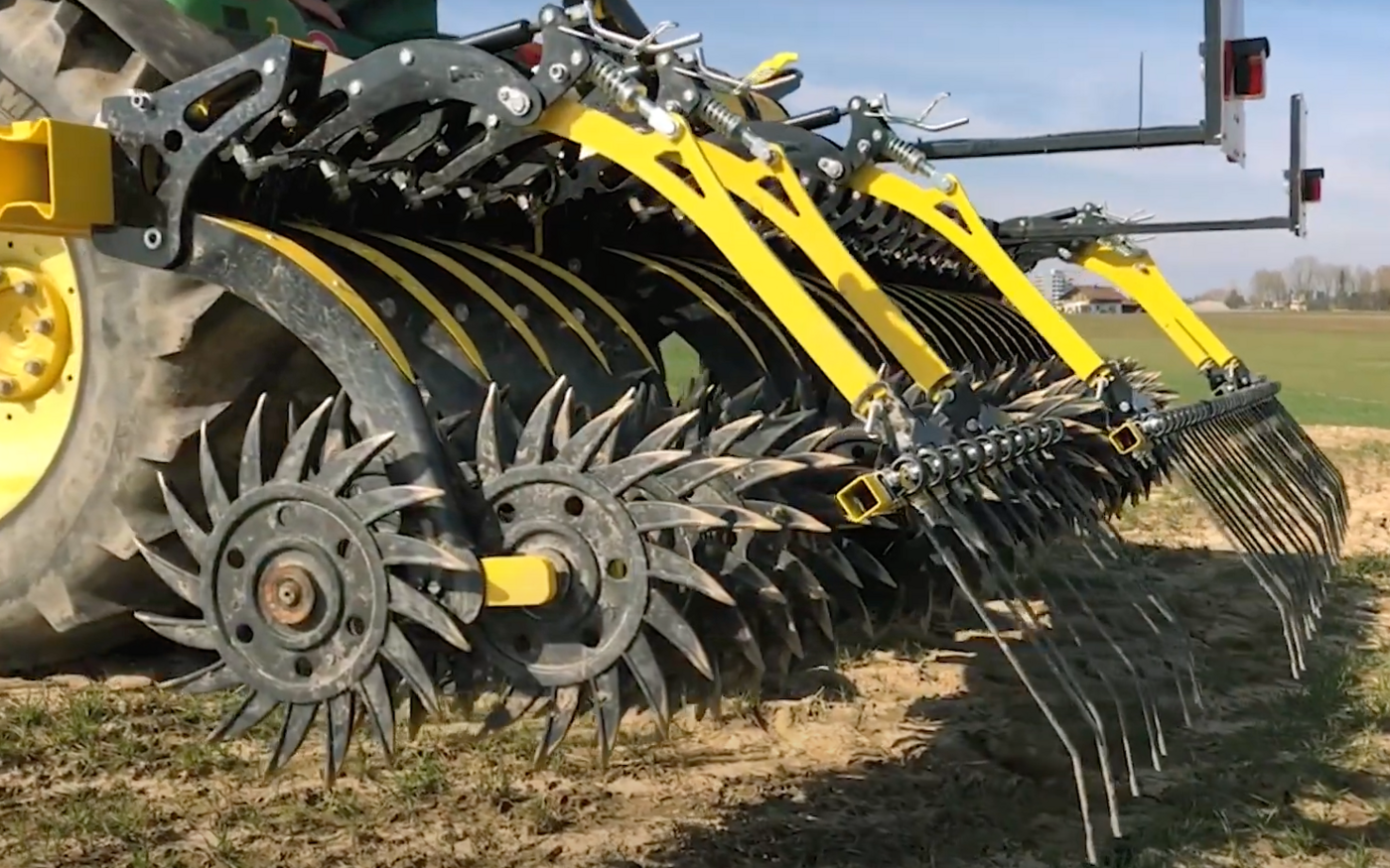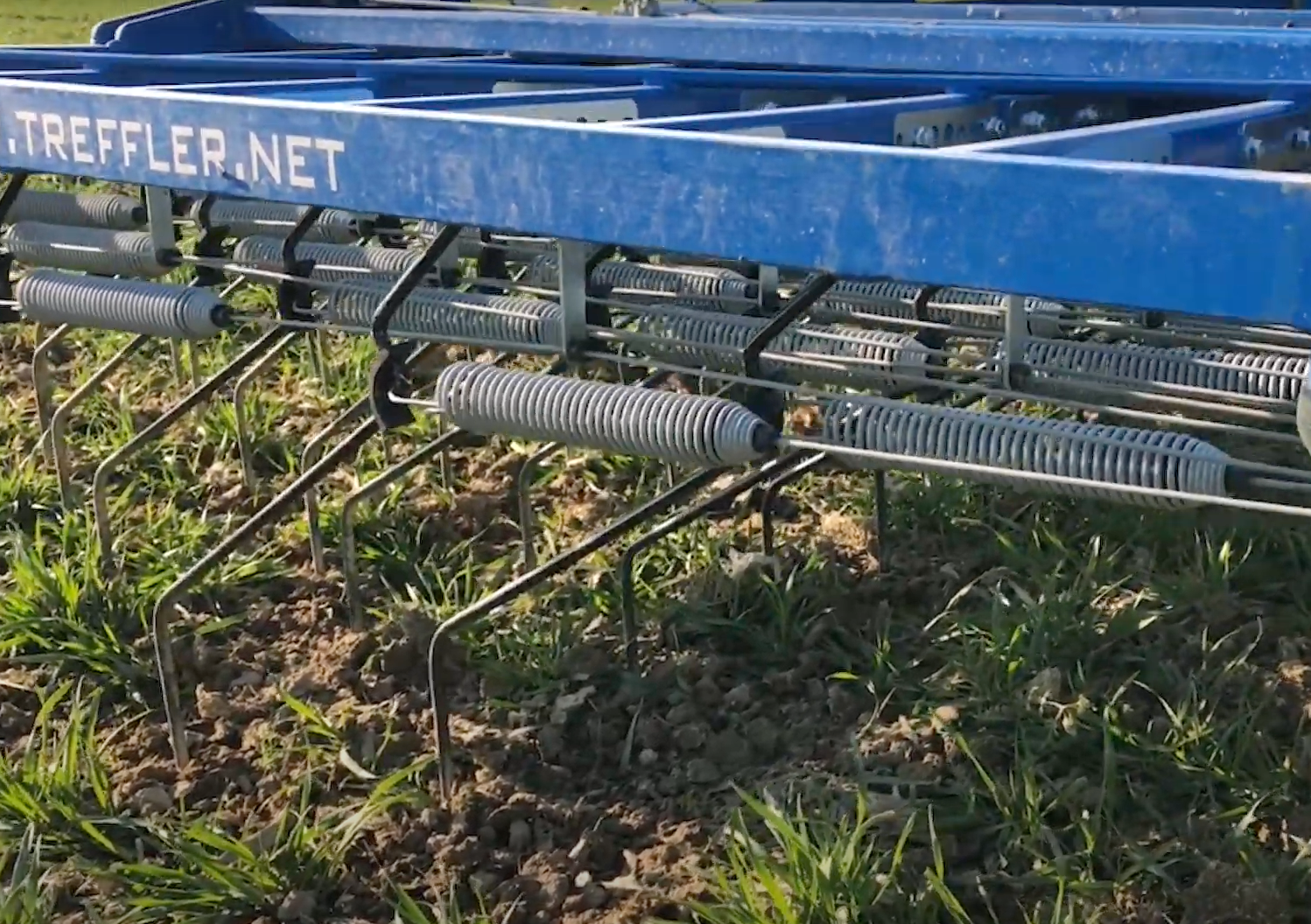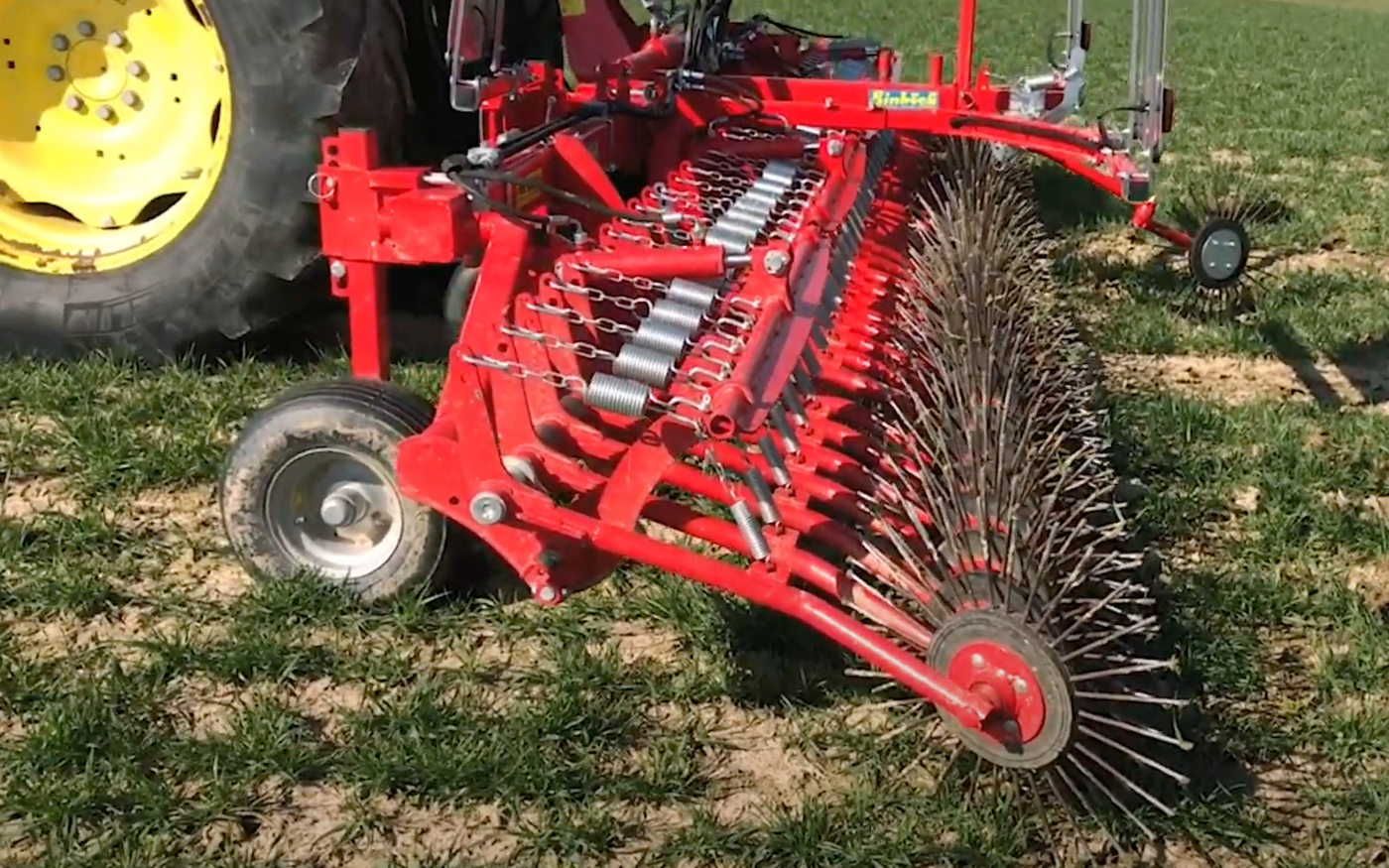 Je aggressiver der Striegel eingestellt ist, desto langsamer sollte das Tempo sein (maximal 10 km/h). Bei Bedarf lasse sich der Druck auf die Sternräder so weit reduzieren, dass sich die Bearbeitung etwa bei leichten Böden quasi auf ein «Streicheln» beschränke.