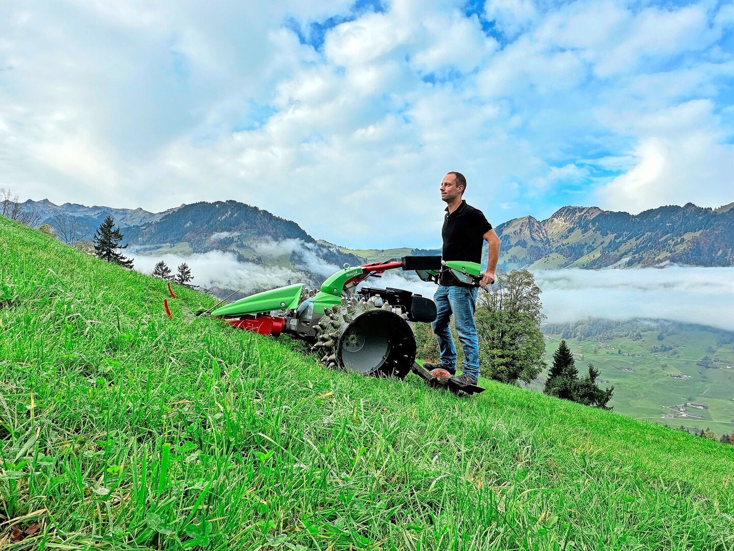 Eine gefederte Achse und rutschfeste Trittfläche tragen zu einem erhöhten Fahrkomfort bei. Die grosszügige Standfläche ermögliche weiter eine angenehme Arbeitsposition und erleichtere das Manövrieren – insbesondere bei längeren Einsätzen. «So wird die Bewirtschaftung von Grünland in der Ebene als auch auf Flächen mit Hanglage in der Hügel- und Bergzone noch effizienter und weniger ermüdend», schreibt der Hersteller.
