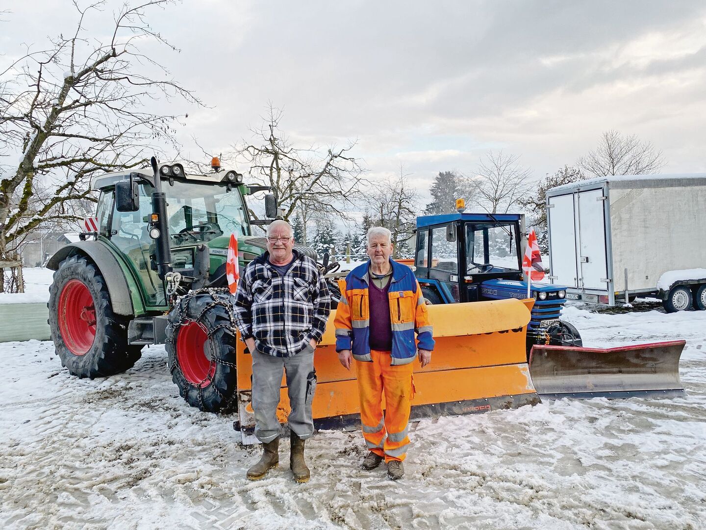 Wenn der Wetterbericht Schnee prognostiziert und Frau Holle über Nacht ihre Kissen schütteln will, dann weiss Jürg Hänni, was er zu tun hat. Ein kurzer Anruf genügt und der 62-jährige Meisterlandwirt aus Allmendingen bei Bern zieht bei seinem Fendt 211 die schweren Schneeketten auf, bevor er ins Bett steigt. Zusammen mit seinem Cousin Alfred Hänni räumt er frühmorgens Strassen und Wege in der Gemeinde vom Schnee…