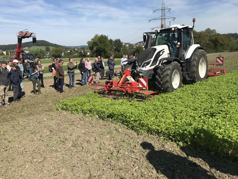 An verschiedenen Praxisstationen und in der Innovationsschüür konnten sich die Besucher der Swiss Future Farm (SFF) auf den neusten Stand bringen, wie die SFF in einer Mitteilung schreibt. An einer der Praxisstationen demonstrierte die Swiss Future Farm unter Leitung von Agroscope das «Control Traffic Farming». Dabei geht es darum, auf dem Feld immer dieselben Fahrspuren zu nutzen und so den Boden zu schonen. Ebenfalls punktgenau erfolgt die ortsspezifische Düngung. «Wir erheben Daten anhand von Drohnenbildern oder Ertragsmessungen beim Dreschen. Diese dienen uns dann als Grundlage um die Nährstoffe sehr gezielt und nur bei Bedarf auszubringen,» so Nils Zehnder, Agricultural Engineer bei Commercial Fuse AGCO.