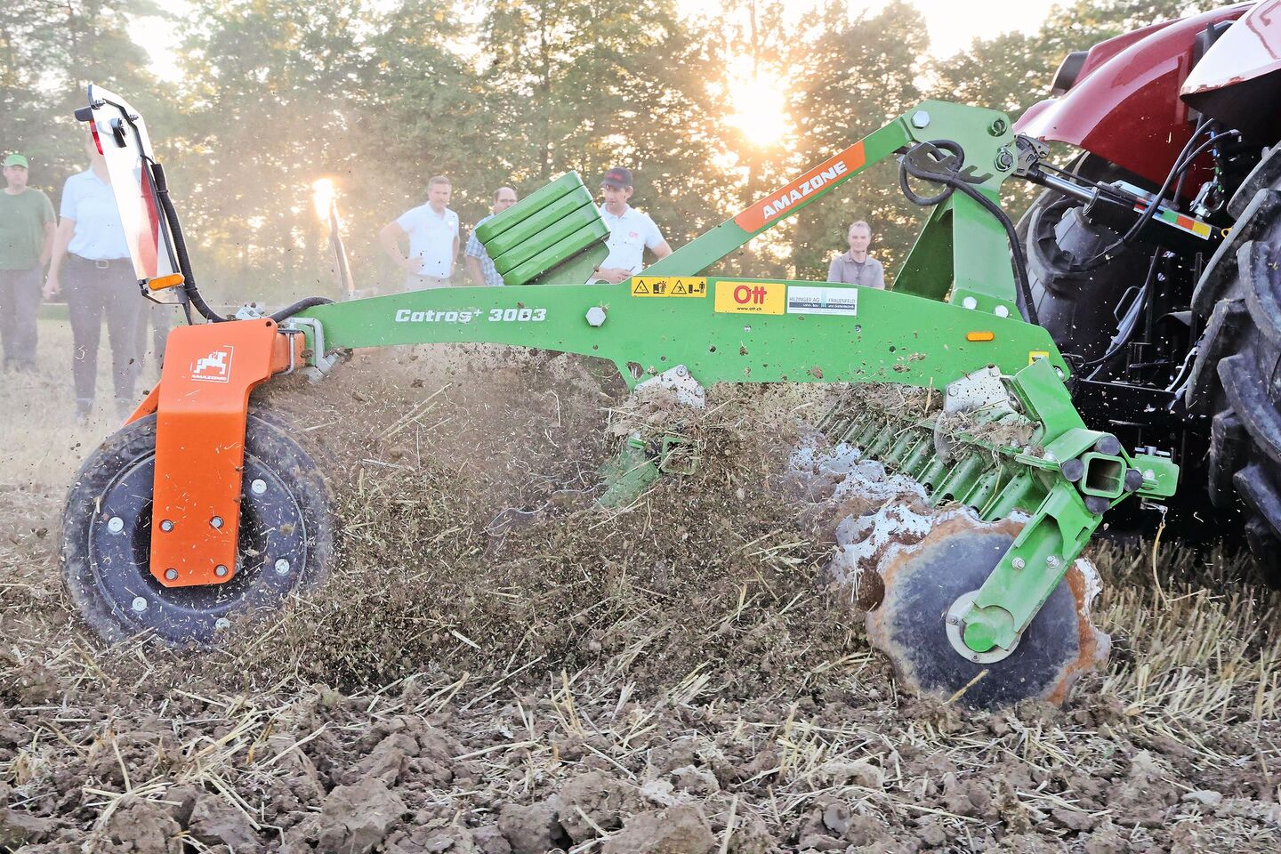 Diese Aggressivität sieht man bei der Vorführung. Sobald die vom Hersteller empfohlenen 12 bis 15 km/h erreicht sind, durchschneiden die gezackten Scheiben den Boden und durchmischen diesen. Dank eines ausgeklügelten Rahmens, den Amazone als Smart-Frame-System bezeichnet, arbeiten sämtliche Scheiben zudem gleichmässig tief. Laut Barbara Stettler kann man die Catros 3003 in Kombination mit einer Messerwalze auch für das Einarbeiten einer wüchsigen Gründüngung einsetzen.