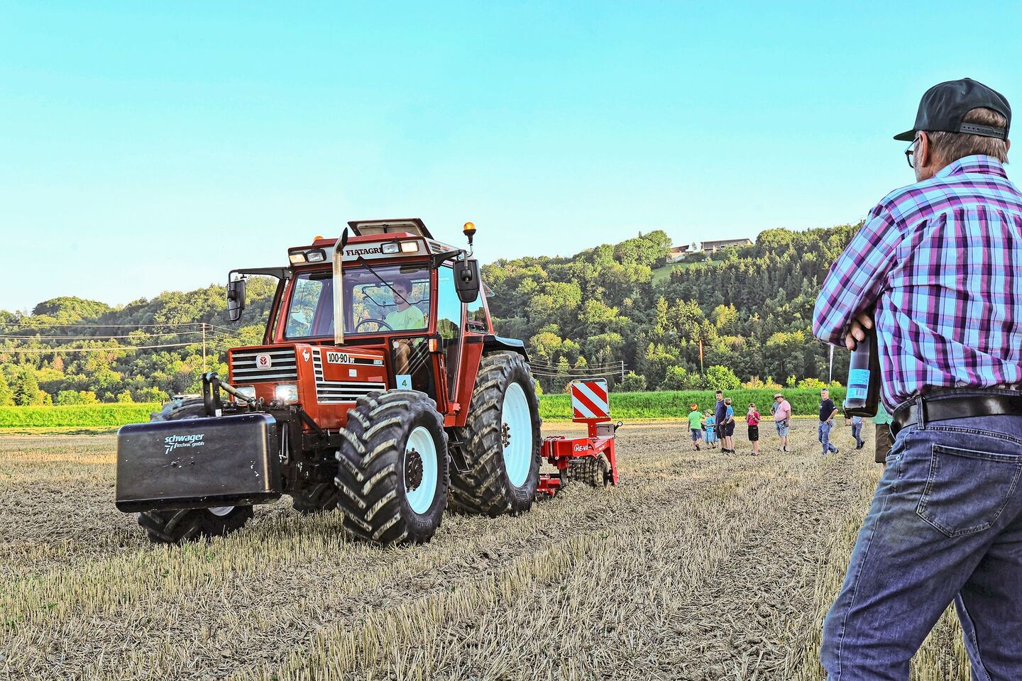 Am Donnerstag, 7. August, dröhnen in Bonau TG die Motoren auf dem Acker. Zwölf Traktoren ziehen Maschinen über das Stoppelfeld. Pflüge, Walzen, Eggen, Sämaschinen ziehen ihre Bahnen – neben ihnen stehen Landwirte aus dem Thurgau, welche die Maschinen beäugen und das Resultat der Arbeit beurteilen. Sie alle kamen auf Einladung der Ott Landmaschinen AG, die in Bonau ihren Feldabend durchführte.