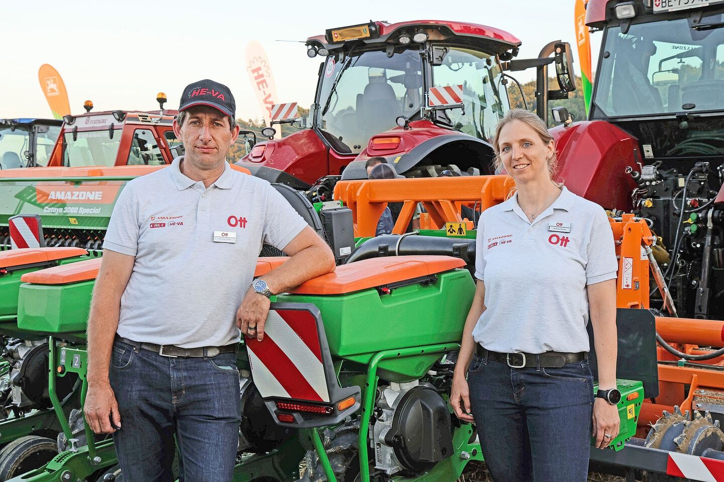 Mit dem Mikrofon in der Hand lässt sie die am Feldrand Spalier stehenden Traktoren einzeln oder im Doppel vorfahren. Neben ihr steht Thomas Hofer, ebenfalls Produktmanager bei Ott und Mitorganisator des Abends. Hinter einem Sicherheitsband verfolgen Landwirte, wie Stettler und Hofer wie bei einem Pingpongspiel im Wechsel zügig die Maschinen vorstellen.