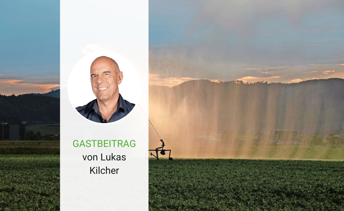 Schmelzwasser aus meterdickem Bergschnee und gut genährten Gletschern bieten den Sommer über Wasser bis ins Talgebiet. Dazu schöne Landregen und immer wieder ein erfrischendes Sommergewitter. Damit war es bis in die 1980er Jahre hierzulande vielerorts möglich, Ackerfrüchte, Obst und Freilandgemüse mit wenig Wassereinsatz zu produzieren. Mit dem Klimawandel nehmen Wetterextreme zu, die Niederschlagsverteilung wird zunehmend ungünstig. Spezialkulturen, immer häufiger auch Kartoffeln, müssen bewässert werden, damit eine sichere Ernte möglich ist. Und weil Quellen versiegen, muss das Wasser für Kühe auf Alpen und Weiden gebracht werden. Der Temperaturanstieg bringt auch Extremniederschläge, die Kulturen wegschwemmen, Böden erodieren, Wasser verunreinigen und Bewirtschaftungswege beschädigen. Und die Zukunftssorgen sind gross: Die natürlichen Wasserspeicher des Alpenraums schmelzen uns weg. Seit 1850 haben wir zwei Drittel der Gletschermasse verloren. Fachleute prognostizieren, dass bis 2100 90 Prozent unserer Gletscher weg sind, mit Auswirkungen weit über den Alpenraum hinaus.