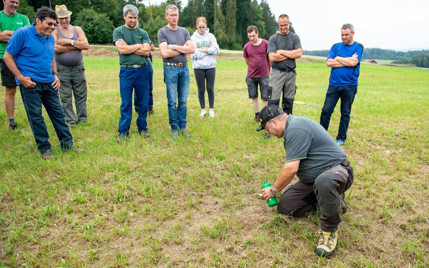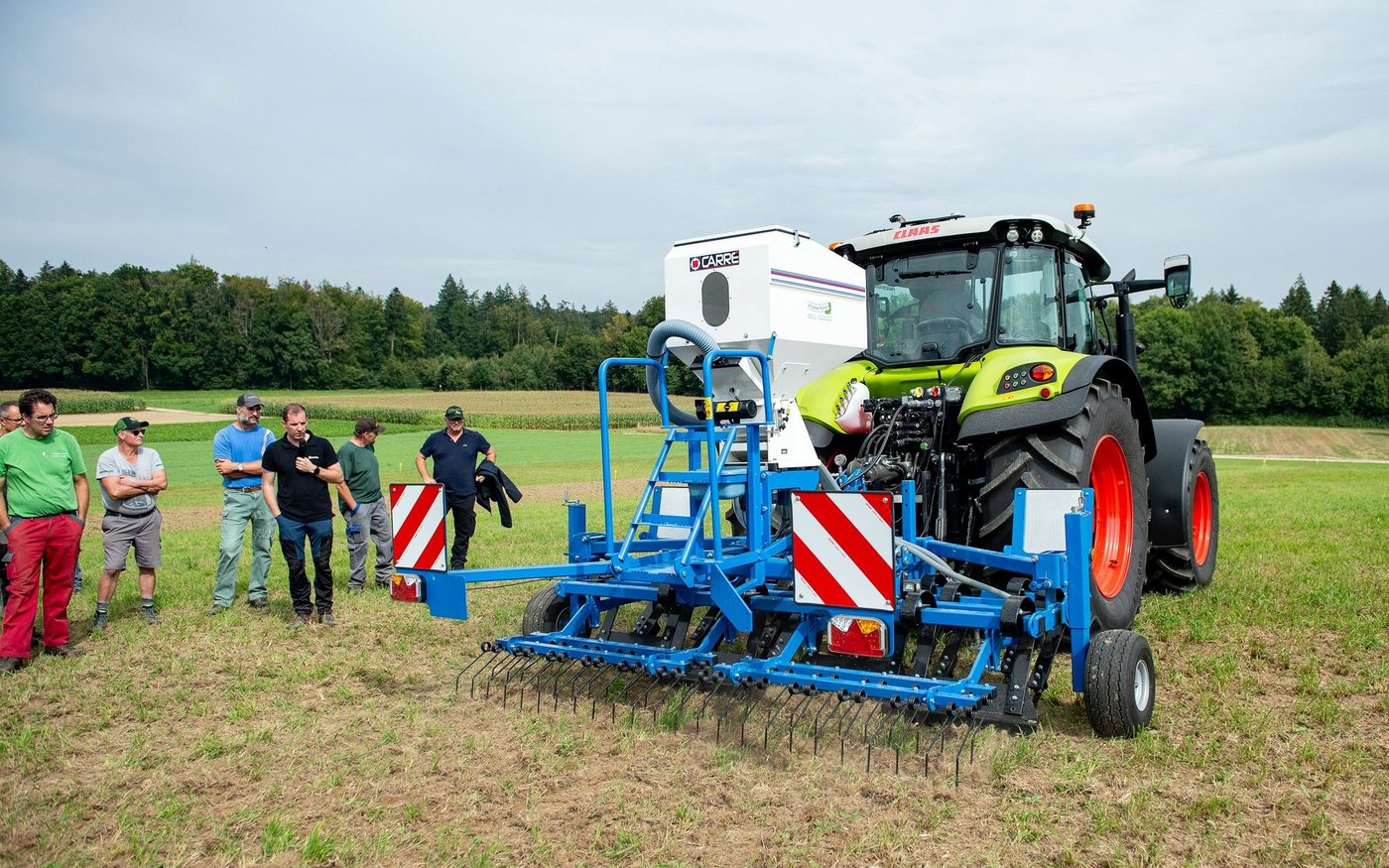 «Das Potenzial, das unser Grünland in der Schweiz hat, ist riesig. Das gilt es zu nutzen», meinte Stefan Lüthy von UFA-Samen an der Übersaatverfahren-Maschinendemo vergangene Woche in Mandach. Wichtig sei, bei degenerierten Beständen nicht zu lange abzuwarten, sondern ein Sanierungskonzept zu erstellen. Vor Ort trafen die Interessierten auf eine mit zwei bis drei Schnitten extensiv genutzte Parzelle mit eher leichtem…