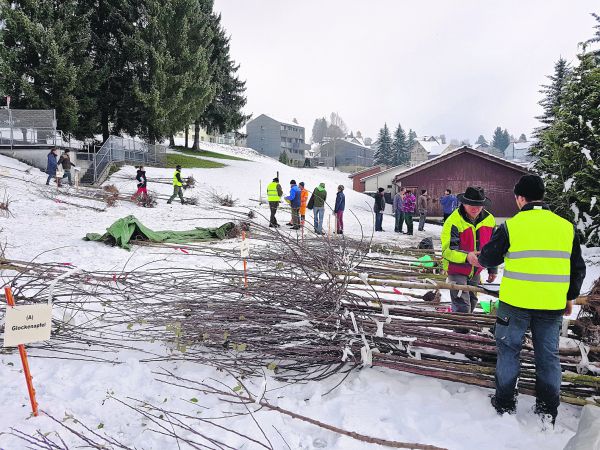 In der Morgendämmerung stapelten sich 1300 junge Bäume aus 67 verschiedenen Sorten beim Zivilschutzzentrum Bächli in Teufen.