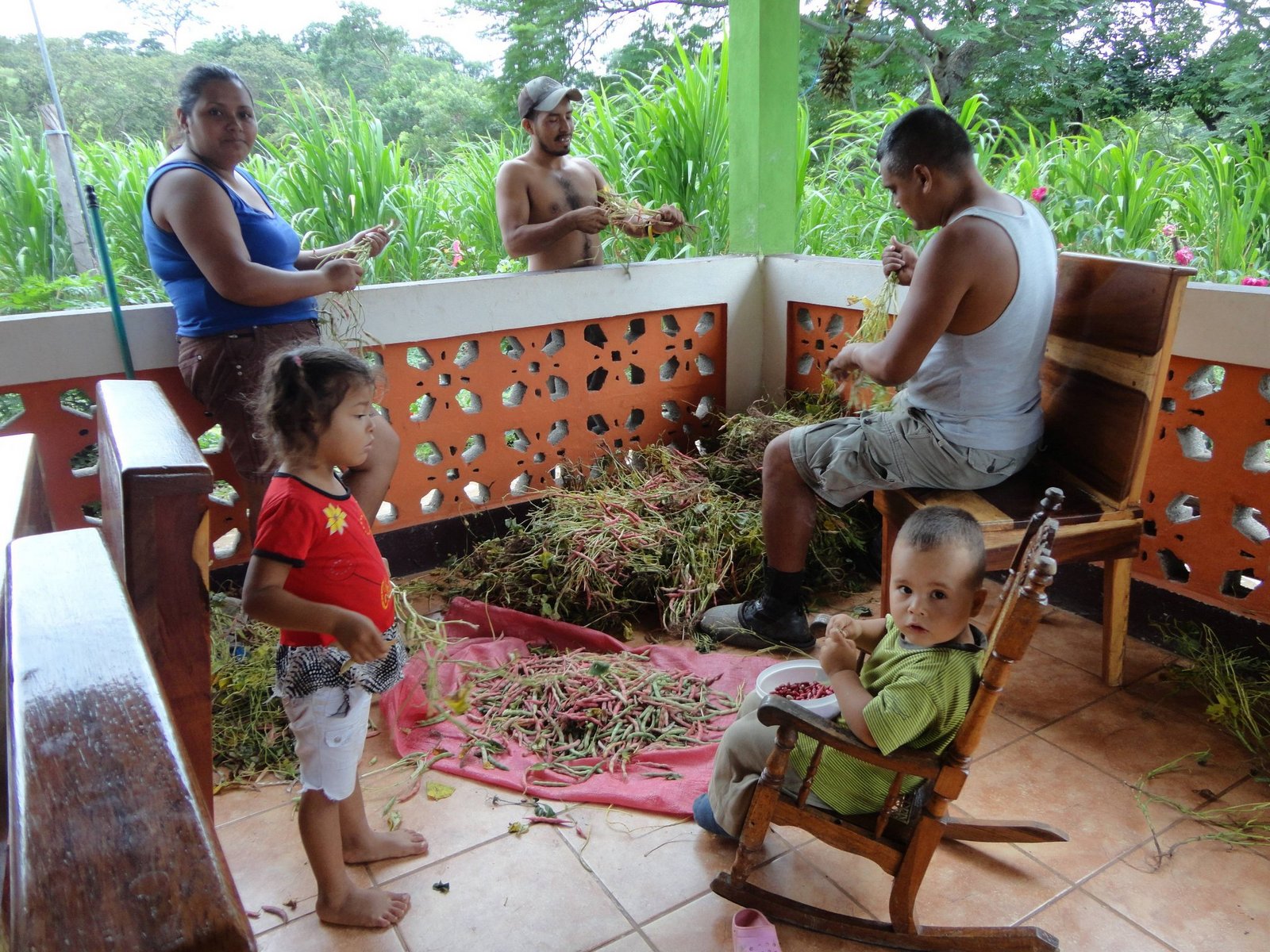 Im Nachbardorf Esquipulas scheinen sie wenig unter Trockenheit gelitten zu haben, denn Freunde von mir haben uns eine grosse Menge „frijoles camahues“ geschenkt. Das sind Bohnen, die nicht mehr grün, aber auch noch nicht reif zum Dreschen sind. Sie sind zwar sehr lecker, müssen aber wie Erbsen mühsam aus ihrer Hülse gelöst werden.