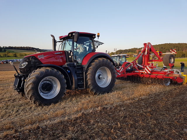 Mit einem Case-IH 300 CVX wurde die Terradisc 5001 vorgeführt. Die klappbare 5-Meter-Maschine verfügt über ein robustes Fahrwerk. Der Traktor, der gegen 400 PS leistet, war mit der Maschine jedoch unterfordert. Wahrscheinlich wäre er es auch mit dem 6-Meter-Modell (Terradisc 6001) gewesen.