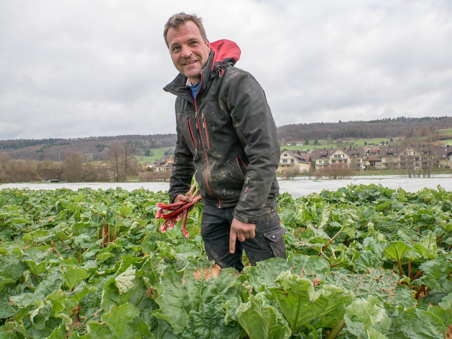 -- NO IMAGE --p class="align-justify">Mit seinen 4 Hektaren Rhabarberfläche gehört Schärer zu den grossen Anbauern in der Schweiz. Er denkt, dass er noch eine Weile der einzige Rhabarber-Frühstarter bleiben wird: "Das Anbauprozedere ist komplexer als es aussieht, und lässt sich von Kollegen nicht so leicht kopieren." -- NO IMAGE --/p>