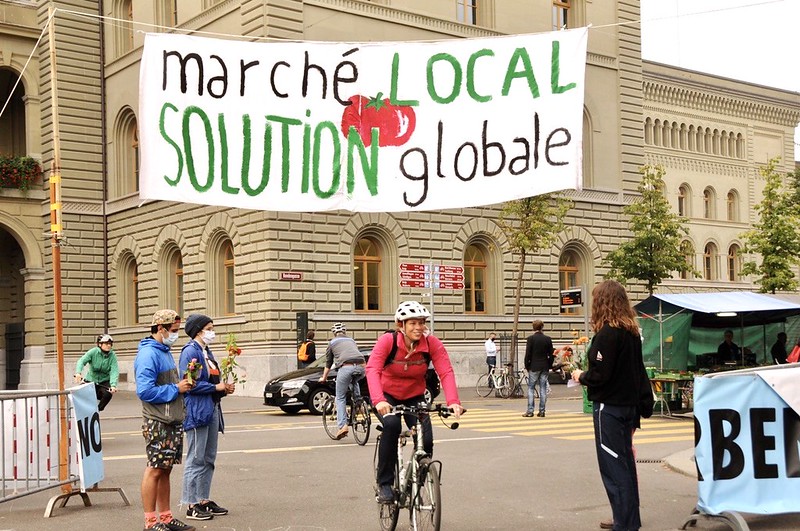 Bauernmarkt ist super, Detailhandel nicht, so lautet hier die Botschaft. (Bild riseupforchange.ch)