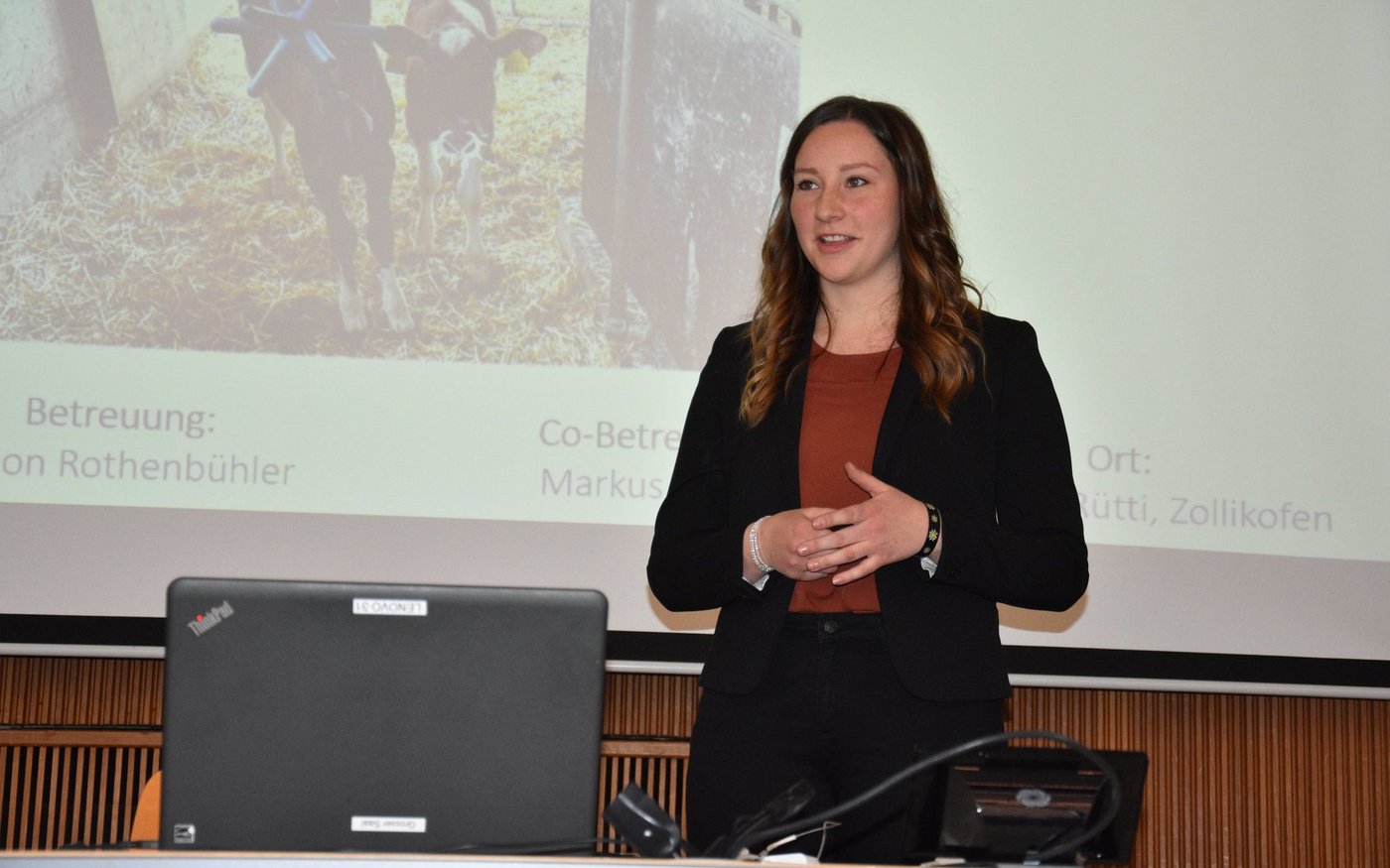 Was die Studierenden alles geleistet haben, zeigte in Vertretung Sandra Glauser, als Sie ihre Diplomarbeit «Erweiterung des Konzepts zur Verminderung des gegenseitigen Besaugens bei Aufzuchtkälber» vorstellte. Die junge Absolventin, welche bei der Firma Melior als Kälberspezialistin arbeitet, konnte aufzeigen, dass es mit einfachen Mitteln möglich ist, das gegenseitige Besaugen der Kälber zu verringern. Auch die beiden Diplomanden Patrick Wampfler und Remo Baumgartner hatten in ihrer Rückschau nur lobende Worte für die Ausbildung übrig.