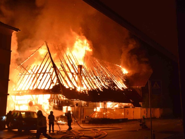 Der Brandfall ereignete sich in der Nacht auf Dienstag (28. April 2020). Beim Eintreffen der Einsatzkräfte stand der gesamte Gebäudekomplex in Vollbrand, wie die Kantonspolizei Solothurn meldet. Die Nachbaren wurden vorsorglich evakuiert, ein Übergreifen des Feuers auf das nebenstehende Haus konnte aber verhindert werden.