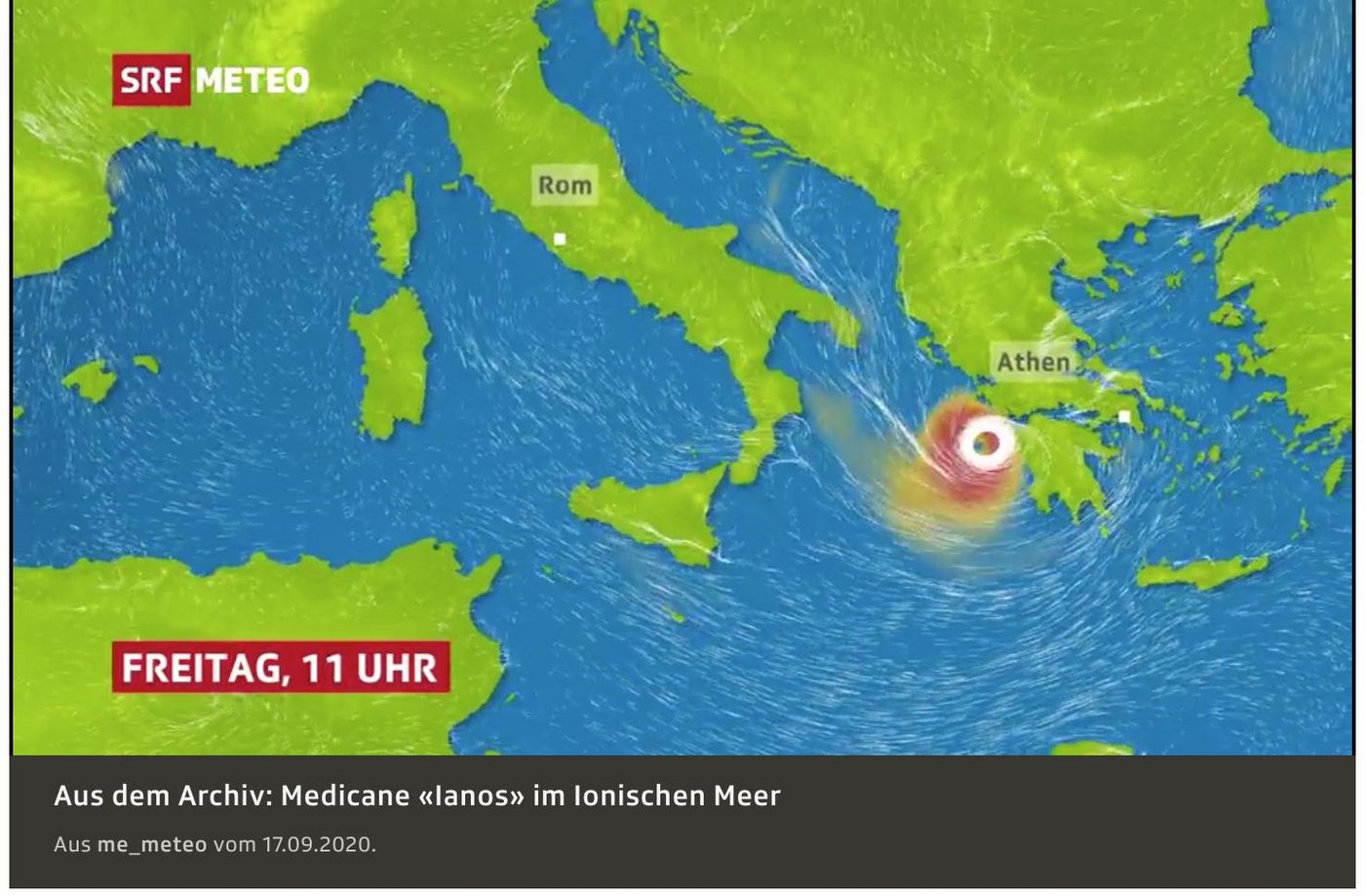 Beim Wirbelsturm «Ianos» handle es sich gemäss SRF um einen sogenannten Medicane. Dies ist ein Schachtelwort der englischen Bezeichnung »Mediterranean hurricane». Es bezeichnet ein ein tropensturm-ähnliches Sturmtief im Mittelmeerraum.