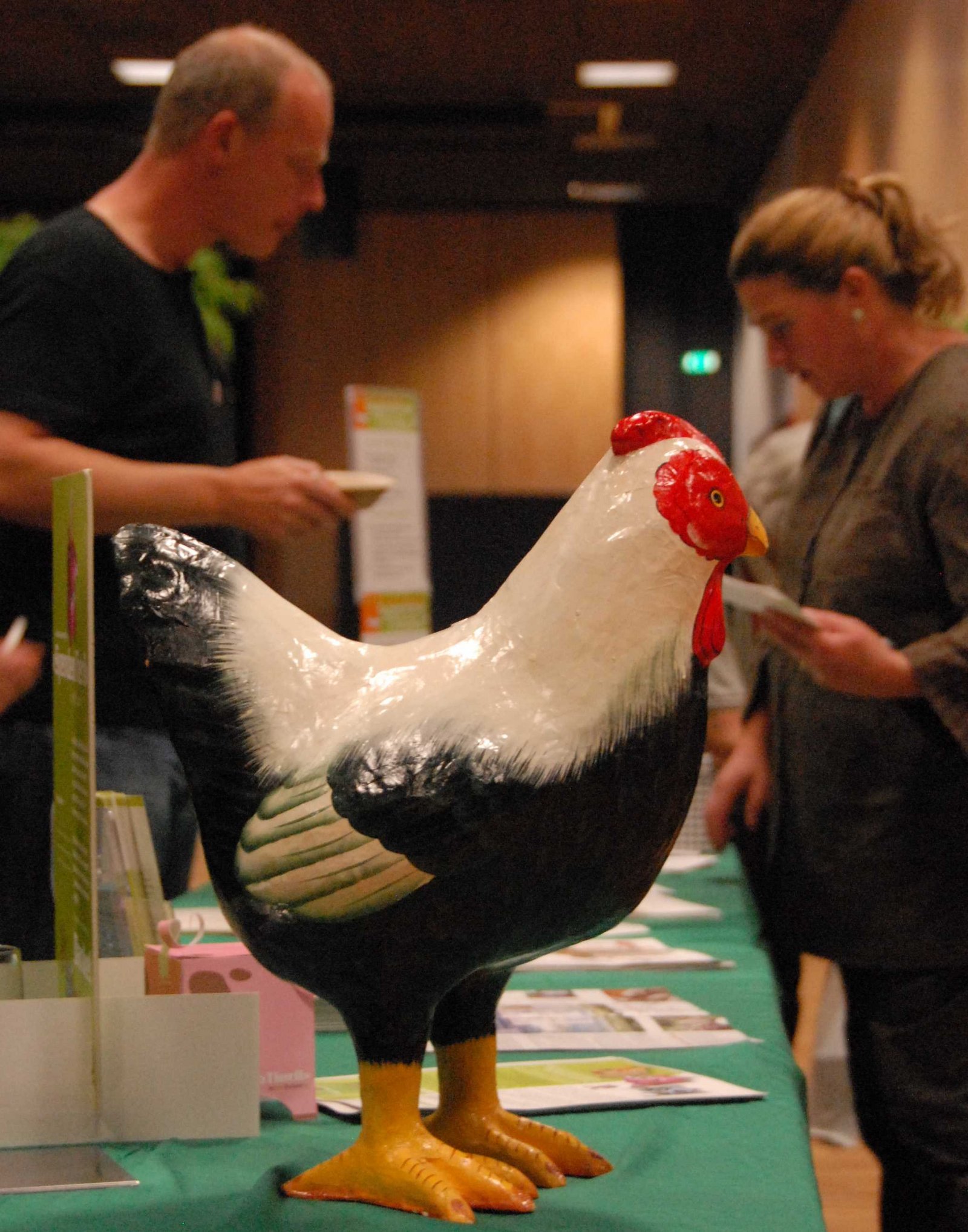 KAGfreiland hat heute am Olma-Forum zur Veranstaltung "Von Suppenhühnern, Hochleistungsrassen und Eintagsküken" geladen. Tanja Kutzer beleuchtete darin in einem Vortrag die Auswirkungen und Problemfelder der Hochleistungszucht und der industriellen landwirtschaft beim Huhn auf. Die Besucher hatten im Anschluss an das Referat Zeit, sich über mobile Hühnerställe, Zweinutzungshühner und alte Rassen zu informieren.