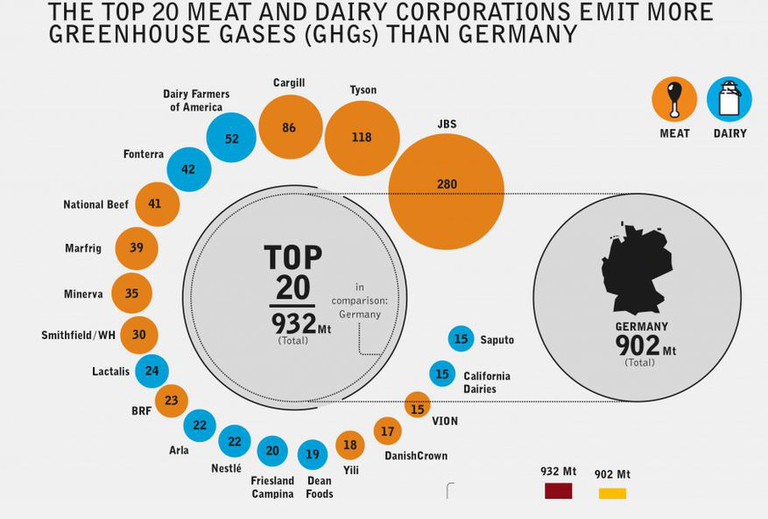 Die drei weltweit grössten Fleischkonzerne verursachten mit 484 Millionen Tonnen CO2-Äquivalent pro Jahr mehr als zehnmal so hohe Treibhausgasemissionen wie die Schweiz, teilt Swissaid mit. Die Hilfsorganisation bezieht sich dabei auf Berechnungen der Organisation Grain, der deutschen Heinrich-Böll-Stiftung und des "Institute for Agriculture & Trade Policy". Auch die Milchwirtschaft wird unter die Lupe genommen. Allein die Nestlé-Gruppe verursacht mit ihrer Milchsparte 22 Millionen Tonnen CO2 – fast halb so viel wie die Schweiz mit 48 Millionen Tonnen Jahresausstoss.