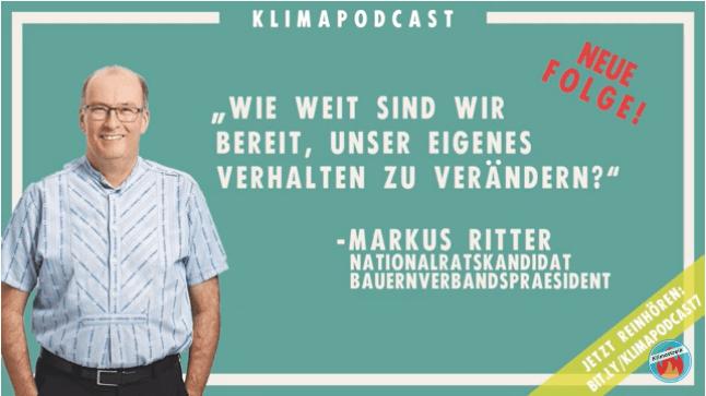 Unter dem Namen Klimapodcast stellt die Schweizer Klima-Bewegung Klimastreik derzeit Gespräche mit Kandidierenden für den National- und Ständerat ins Netz. Auch Markus Ritter wurde eingeladen.