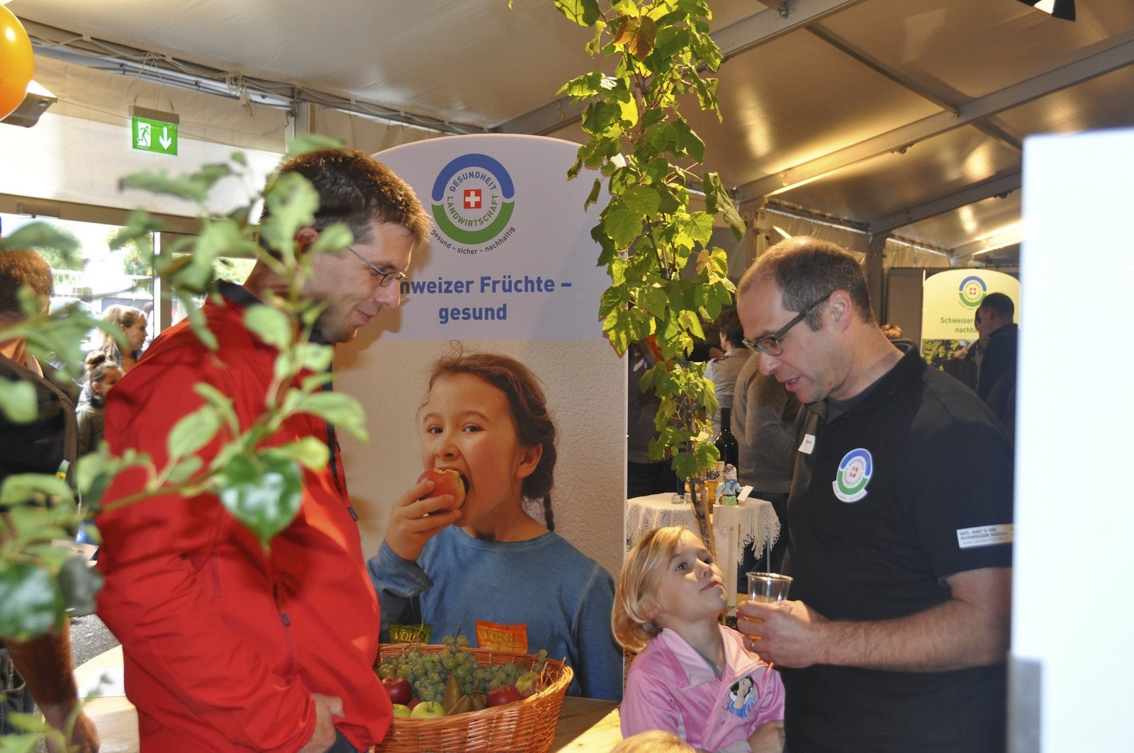 Die Besucher konnten sich vor Ort informieren, warum sie einheimischen Produkten den Vorzug geben sollten. Hervorgehoben wurde zum Beispiel die ausgezeichnete Trinkwasserqualität in der Schweiz, wozu die Landwirte mit ausgeglichenen Nährstoffbilanzen und schonender Bodenbearbeitung einen grossen Teil beitragen. Bildlicher hätte dieser Punkt nicht dargestellt werden können als mit einem Brunnen, der vor Ort bestes Buttisholzer Trinkwasser mit wertvollen Mineralien lieferte. Manchmal ein Leidwesen der Bauern, doch eigentlich ein Vorteil für die Vermarktung der landwirtschaftlichen Erzeugnisse, sind die ständigen und strengen Kontrollen. Zusammen mit dem hohen Bildungsstand der Schweizer Bauern stellen sie die beste Qualitätssicherung dar.