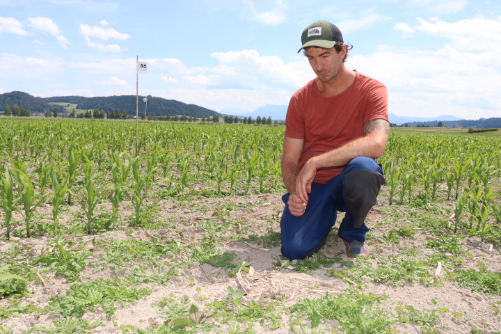 Urs Kaufmann muss schon ein wenig seufzen beim Gang über sein Maisfeld im Wauwiler Moos. Die flächigen Nester von Taubnesseln und Franzosenkraut machen ihm keine Freude. «Jetzt wäre eine zweite Spritzung fällig», sagt der Landwirt aus Schötz. Aber das wird er nicht tun. Denn zwischen den knöchelhohen Maispflanzen tummeln sich junge Kiebitze. Etwa die Hälfte von ihnen würde eine Dusche mit Pflanzenschutzmitteln nicht überleben. Im Feld liegen weitere Nester mit Eiern, gut getarnt und nur aus nächster Nähe zu erkennen.