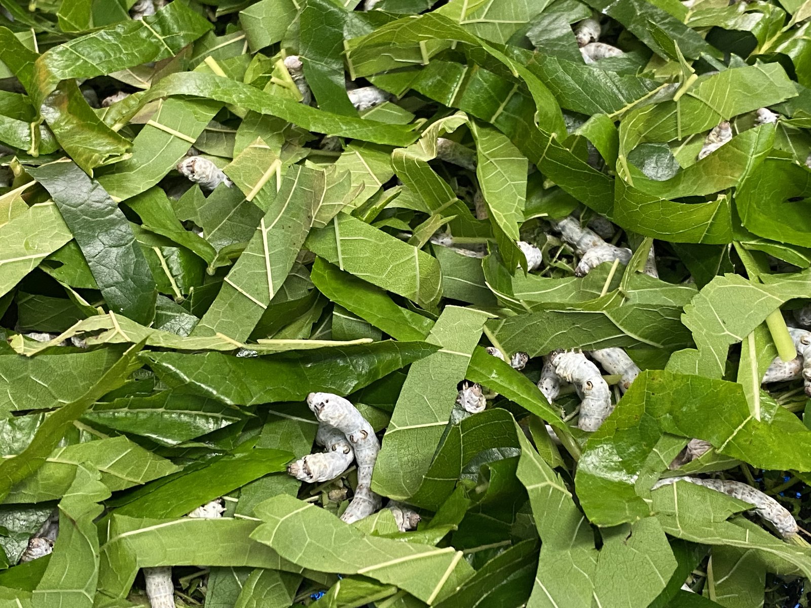 Bei Ueli Ramseier und Bettina Clavadetscher raschelt es in der umfunktionierten Garage in Hinterkappelen im Kanton Bern. Es ist nicht etwa ein Motor, der ungewohnte Geräusche von sich gibt, sondern 15 000 Seidenraupen, die sich an frischen Maulbeerblättern vergnügen. Die auf dem Bild 15 Tage alten gräulichen Raupen ernähren sich ausschliesslich von den Blättern der weissen Maulbeere (Morus alba) und…