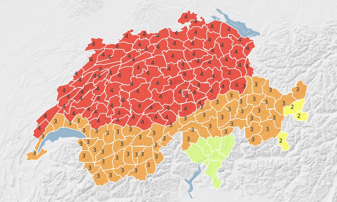 Meteo Schweiz empfiehlt daher, den Aufenthalt im Freien zu vermeiden.