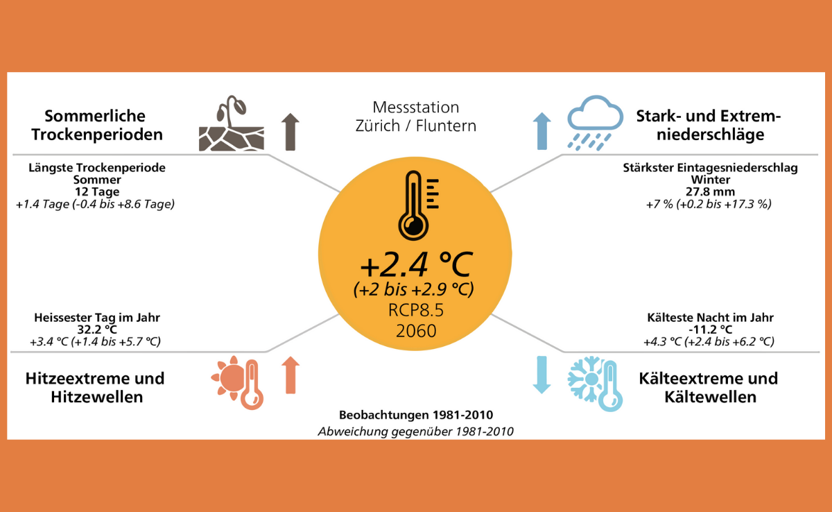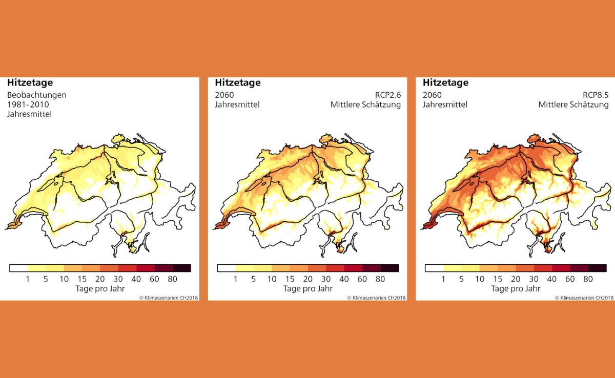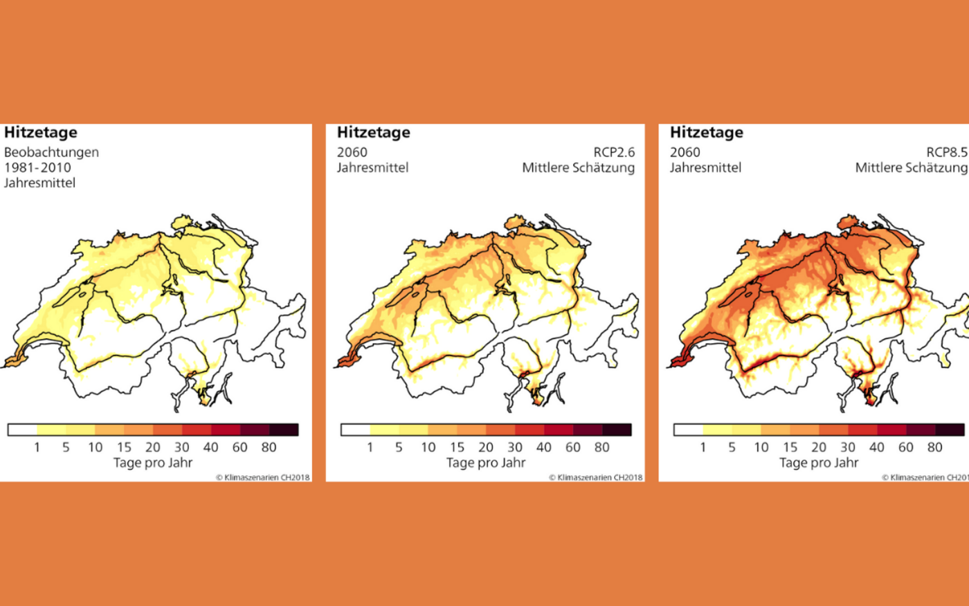 Was die Temperatur der Zukunft angeht, ist meist von Durchschnittswerten die Rede. Dies auch auf globaler Ebene, wo das Pariser Abkommen die Erderhitzung auf durchschnittlich 1,5 Grad begrenzen will. Weitaus heftiger klettern aber die Höchsttemperaturen, schreibt das NCCS: An heissen Sommertagen werde es 2 bis 5,5 Grad wärmer als heute – 40 Grad sind somit nicht mehr weit entfernt. In den Kantonen Genf, Tessin und Zürich sollen Hitzetage in tieferen Lagen bis 2060 ohne Klimaschutz drei- bis viermal häufiger werden.