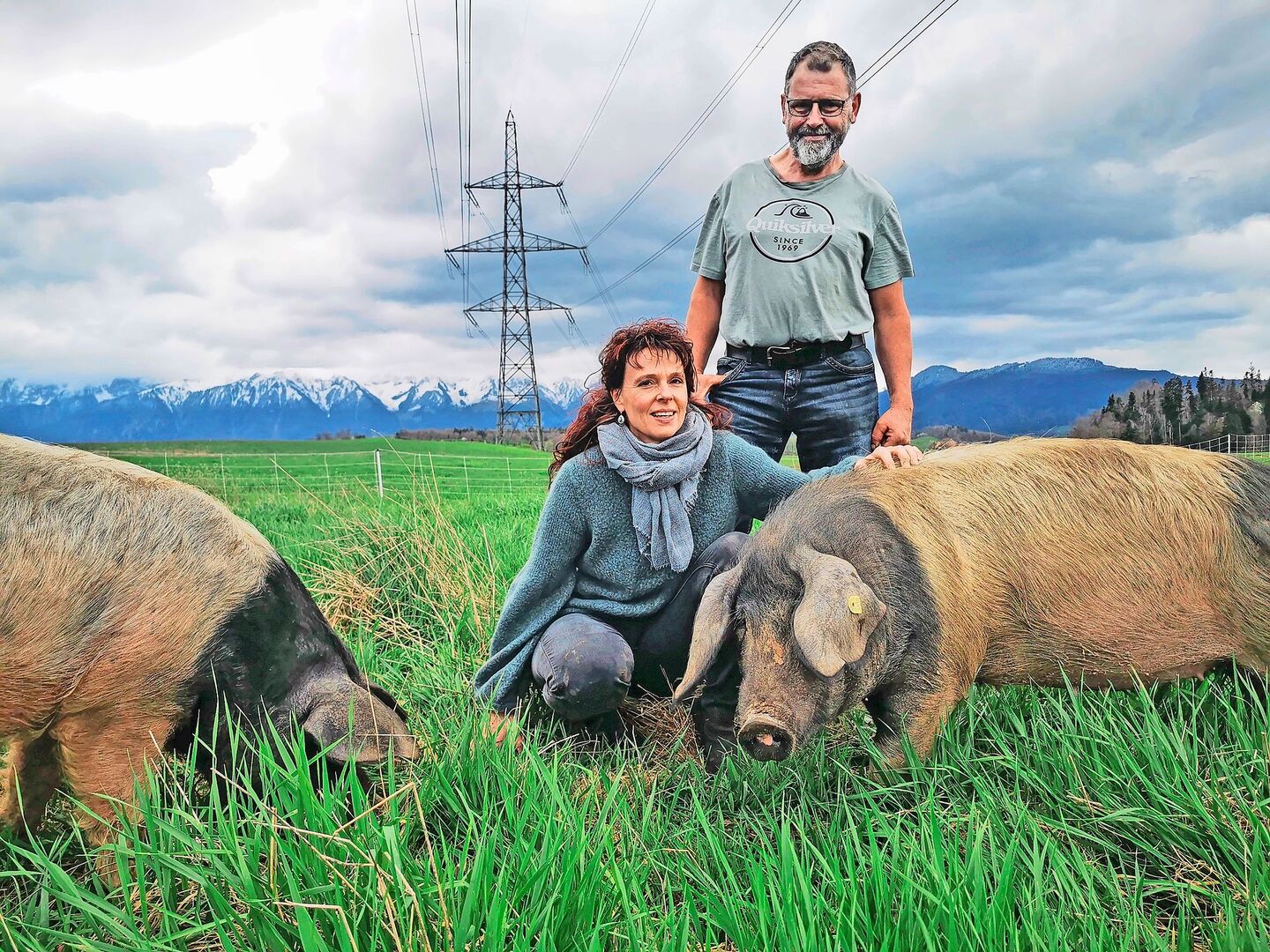 Die Ohren wackeln lustig, als die Schweine über die Weide auf Urs Rubi zurennen. «Eigentlich wären die alle schwarz-weiss», lacht er beim Anblick der erdfarbenen Truppe. Offenbar hat die warme Frühlingssonne bei den Vierbeinern schon die Lust auf ein Schlammbad geweckt. «So müssen doch Schweine leben», betont Rubi mit Blick auf die Tiere, die sich zutraulich um ihn versammeln. «Haben sie die Möglichkeit, fressen…