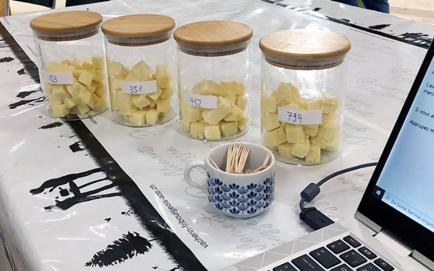 In der Konsumentenstudie wurde 245 Teilnehmenden Vacherin-Fribourgeois-Käse in vier Varianten vorgesetzt: jeweils jung (7 Wochen gereift) und reif (12 Wochen gereift) aus thermisierter Milch und jung (6 Wochen gereift) und reif (15 Wochen gereift) aus Rohmilch.