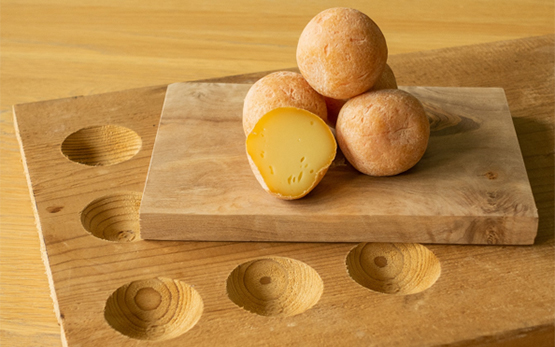 Zum Reifen zwischen der Pflege platzierte Patrick Galli seinen runden Käse auf Fichtenholzbrettern. Passende Mulden sorgten dabei dafür, dass die Laibe nicht davon rollten.