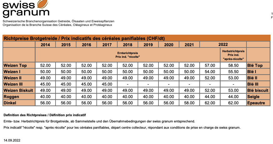 Angesichts dieser Schwierigkeiten unterstreiche der Konsens aller Branchenpartner über die Herbstrichtpreise den gemeinsamen Einsatz für die Produktion von Schweizer Getreide zur Herstellung von inländischem Mehl und Brot oder Backwaren daraus.
