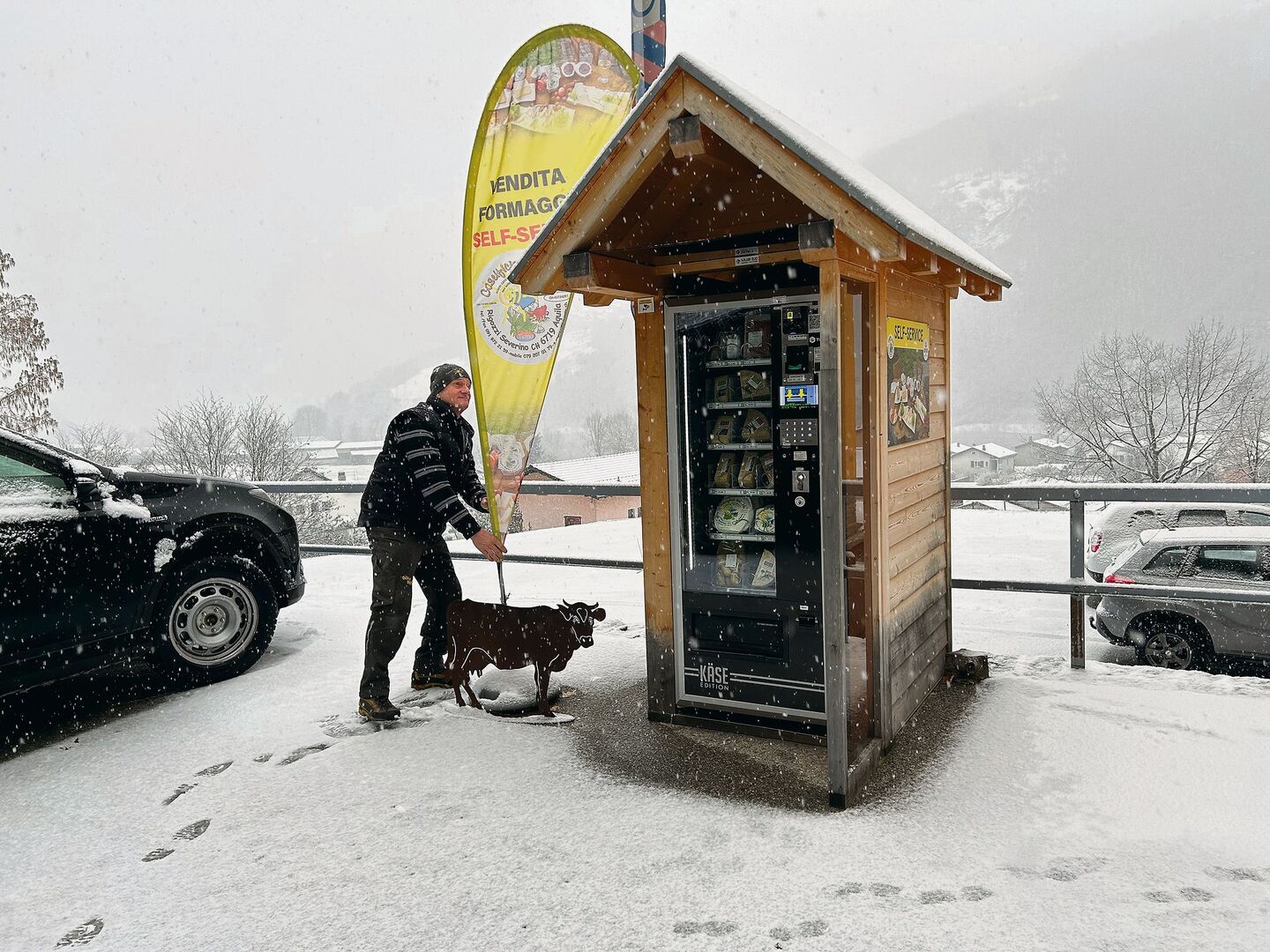 «Das wird nicht funktionieren», sagten die Firmenvertreter, als sie 2020 den Verkaufsautomaten der Familie Rigozzi aufstellten. «Aber klar doch», widersprach Nancy Rigozzi und stellte ein 1 kg Käsestück ins Automatenfach. «Ein 200 g Käsestück wie in einem Laden reicht doch niemals für eine Familie», rechtfertigte sich Nancy – und sie behielt Recht. Der Viertel Alpkäse Camadra AOP wird am Stück am Automaten…