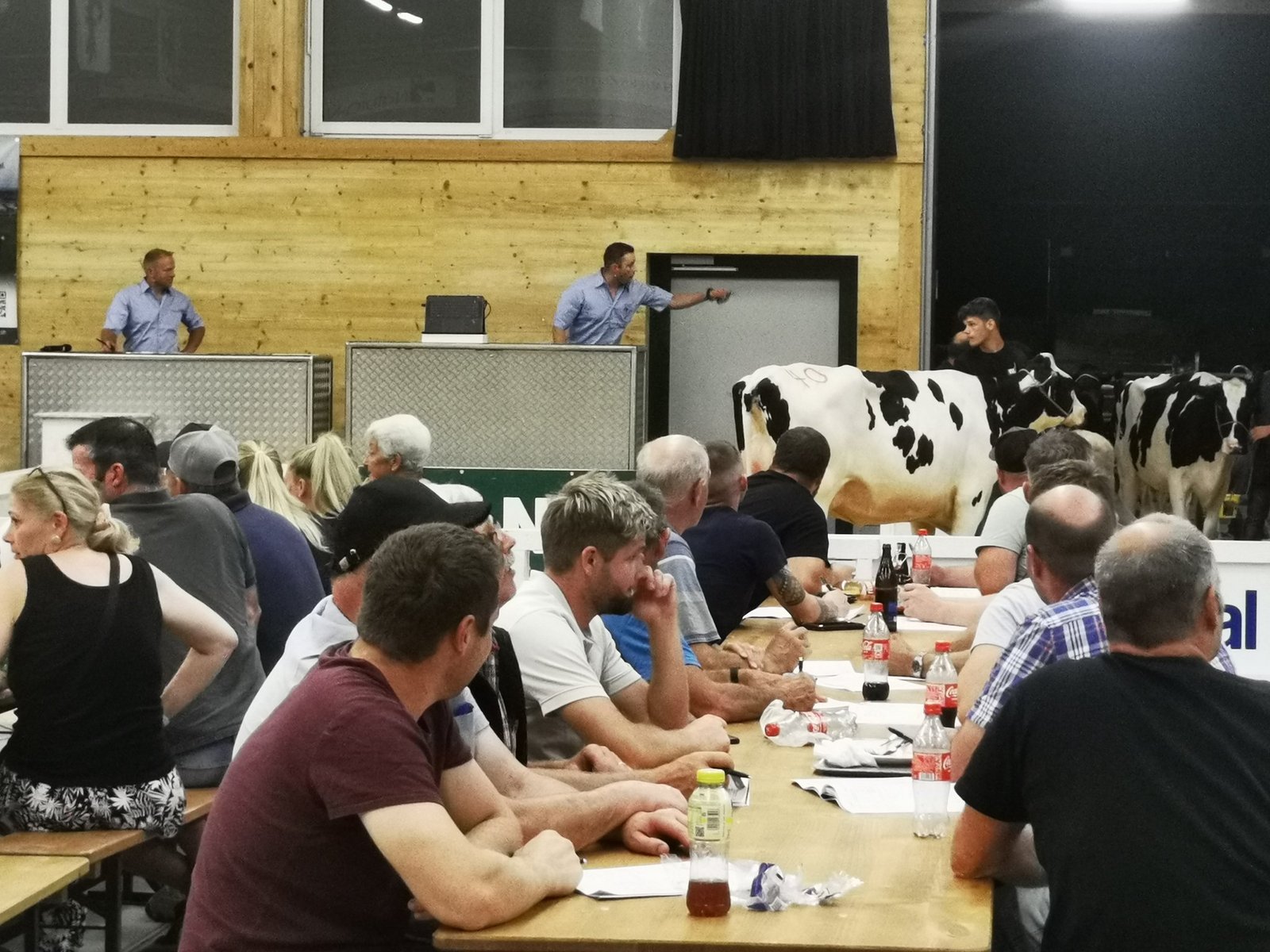 «Das hier kannst du mieten, wenn du ein grosses Fest feiern oder eine Versammlung organisieren willst», erklärt ein Lehrmeister seinem Lehrling. Der lässt in der grossen Halle staunend die Augen schweifen. Die beiden waren am Dienstag an der Jubiläumsauktion in der Vianco-Arena zu Gast. Der Lehrling studierte den Katalog genau, staunte über die unterschiedliche Darstellung der Datenblätter je nach Zuchtverband. «Auf…