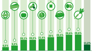 Mit 13,1 Prozent hielt sich der Bio-Anteil bei den Absatzmengen von Brot- und Backwaren im Detailhandel 2022 im Vergleich zu 2018 konstant. Am meisten Bio wird bei Frischbroten verkauft, wo das letzte Jahr mit einem Umsatzanteil von 24,5 Prozent für Bio als Spitzenjahr hervorsticht. Torten und Rouladen müssen für den Durchschnitts-Kunden allerdings nicht bio sein, dort beträgt der Bio-Anteil lediglich 2,6 Prozent. Rund ein Drittel der verkauften Kranz-, Stangen-, Tessiner- und Vollkornbrote waren dafür biologisch hergestellte Produkte.