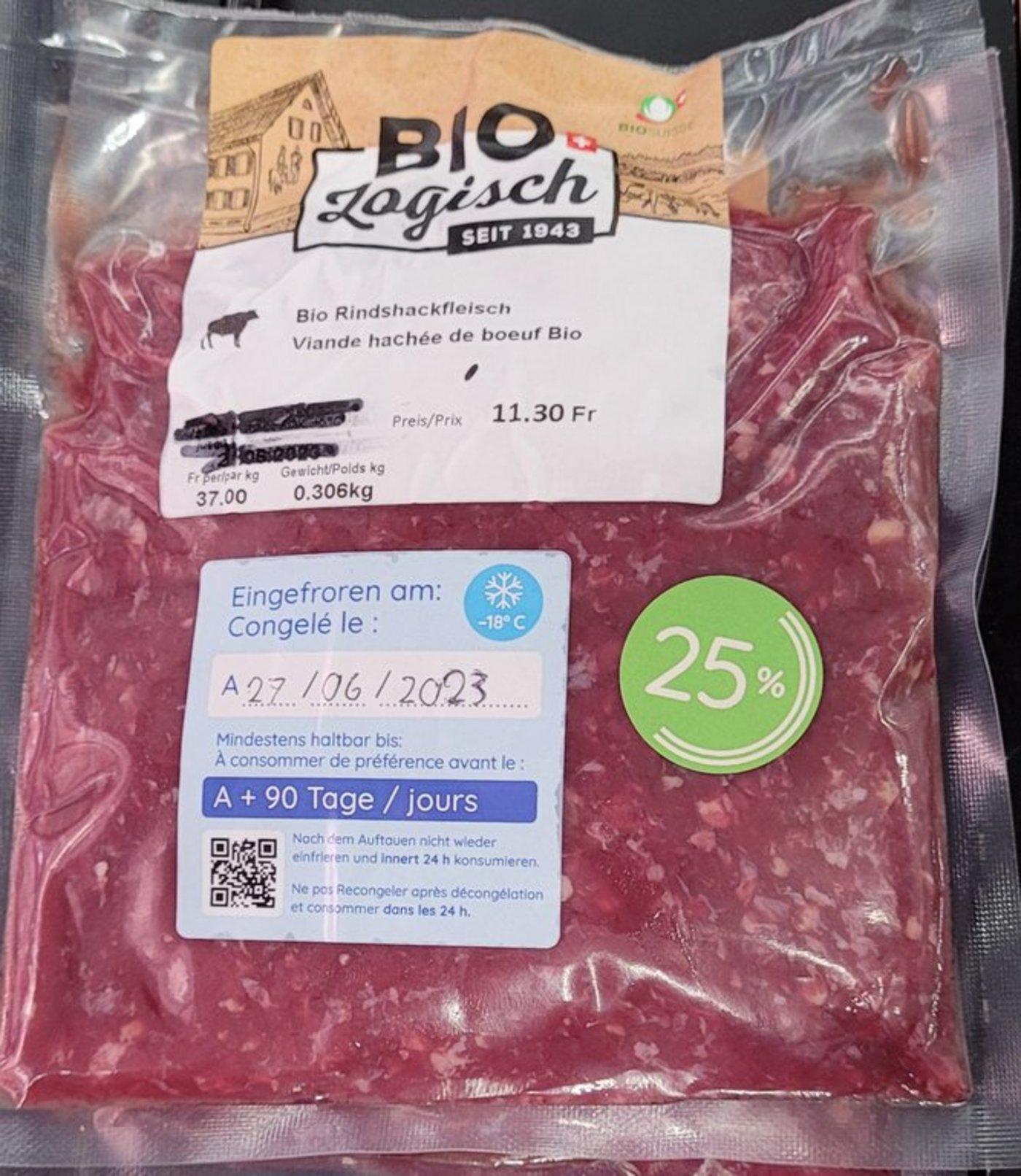 - Gefrieretikette, zweisprachig deutsch und französisch