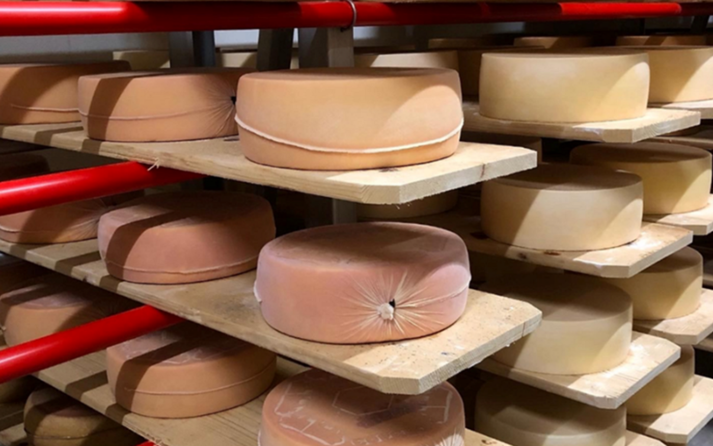 Die eingeschnurpften Käselaibe sehen gewöhnungsbedürftig aus, wie sie da im Keller auf Holzbrettern vor sich hin reifen. Sobald sie aber ausgepackt sind, zeigen sie die für geschmierten Käse typische orange-braune Rinde und auch der Geschmack soll überzeugen – aber nicht nur.