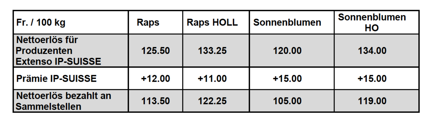Vermarktung IP-Suisse Ölsaaten